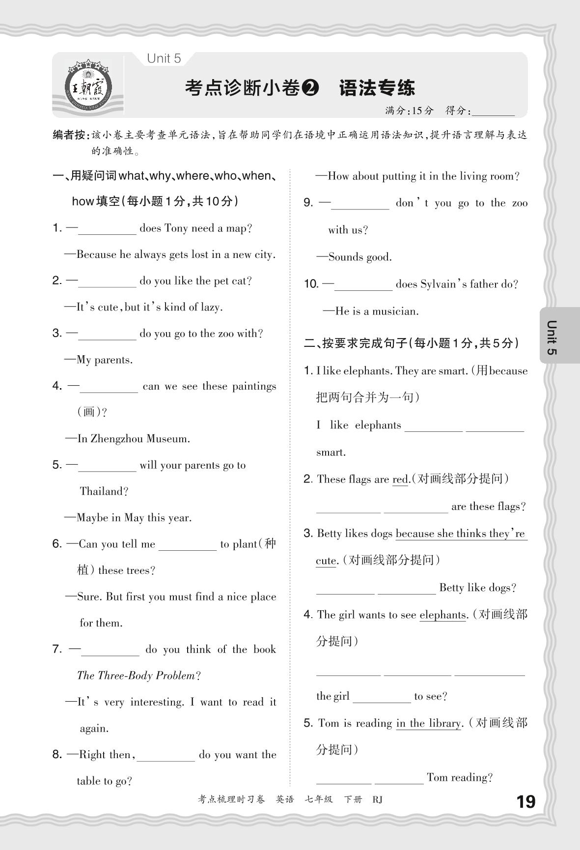 2024春下册七年级英语人教版 Unit 5 考点诊断小卷2 语法专练_R240117171558782