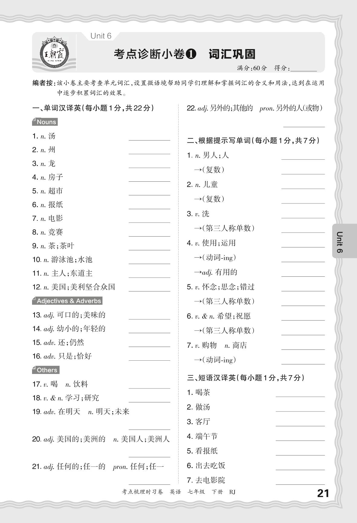 2024春下册七年级英语人教版 Unit 6 考点诊断小卷1 词汇巩固_R240117171559361