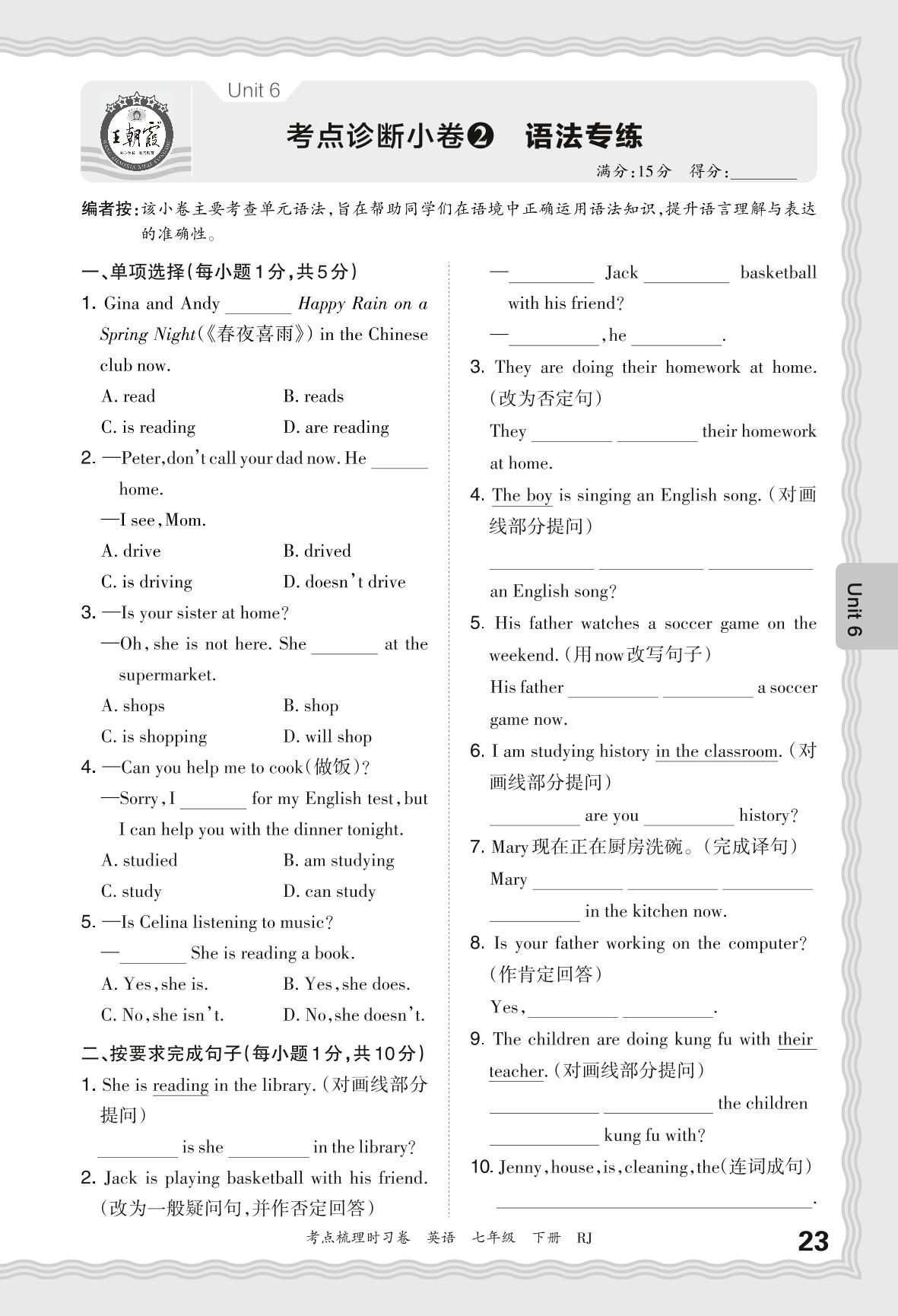 2024春下册七年级英语人教版 Unit 6 考点诊断小卷2 语法专练_R240117171600448