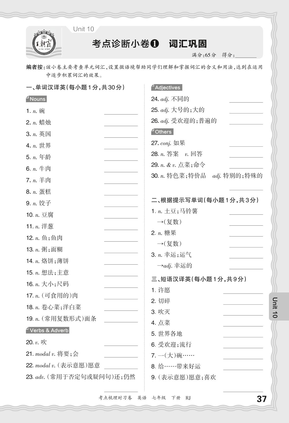 2024春下册七年级英语人教版 Unit 10 考点诊断小卷1 词汇巩固_R240117171604189