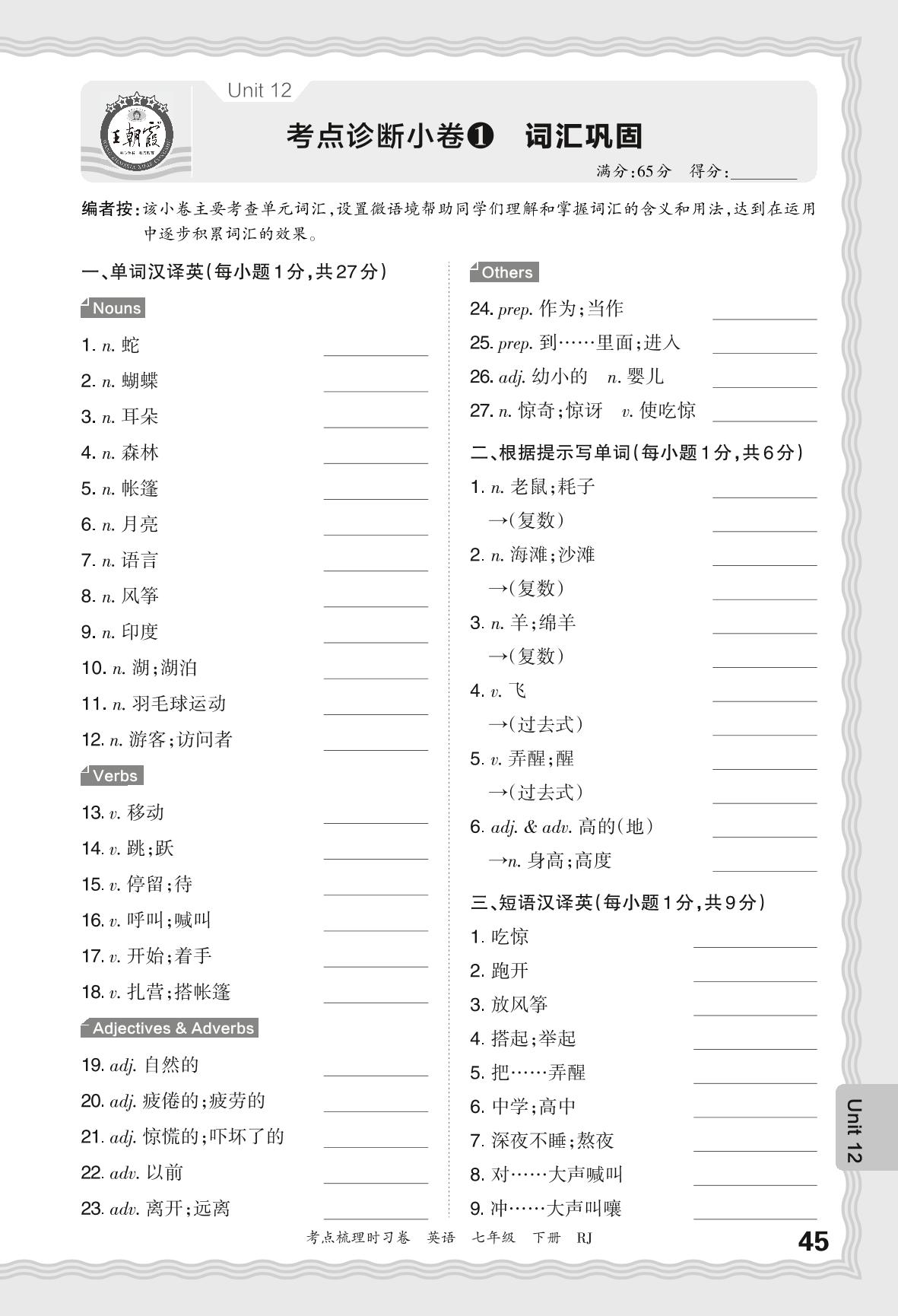 2024春下册七年级英语人教版 Unit 12 考点诊断小卷1 词汇巩固_R240117171606989