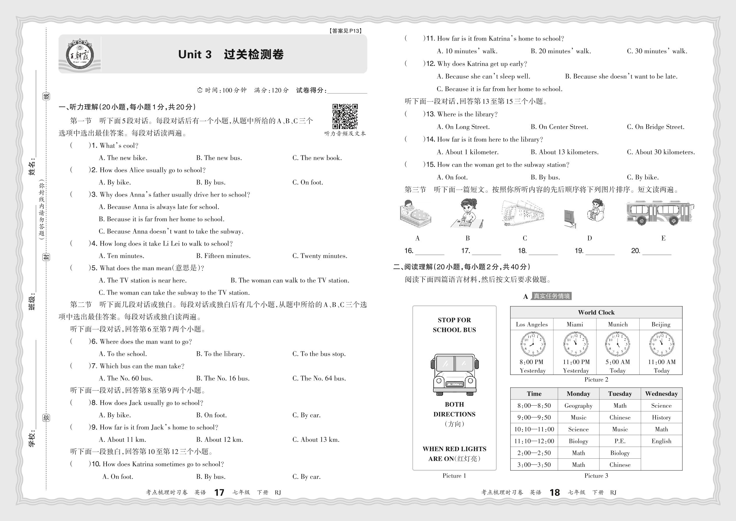 2024春下册七年级英语人教版 Unit 3 过关检测卷_R240117171608725