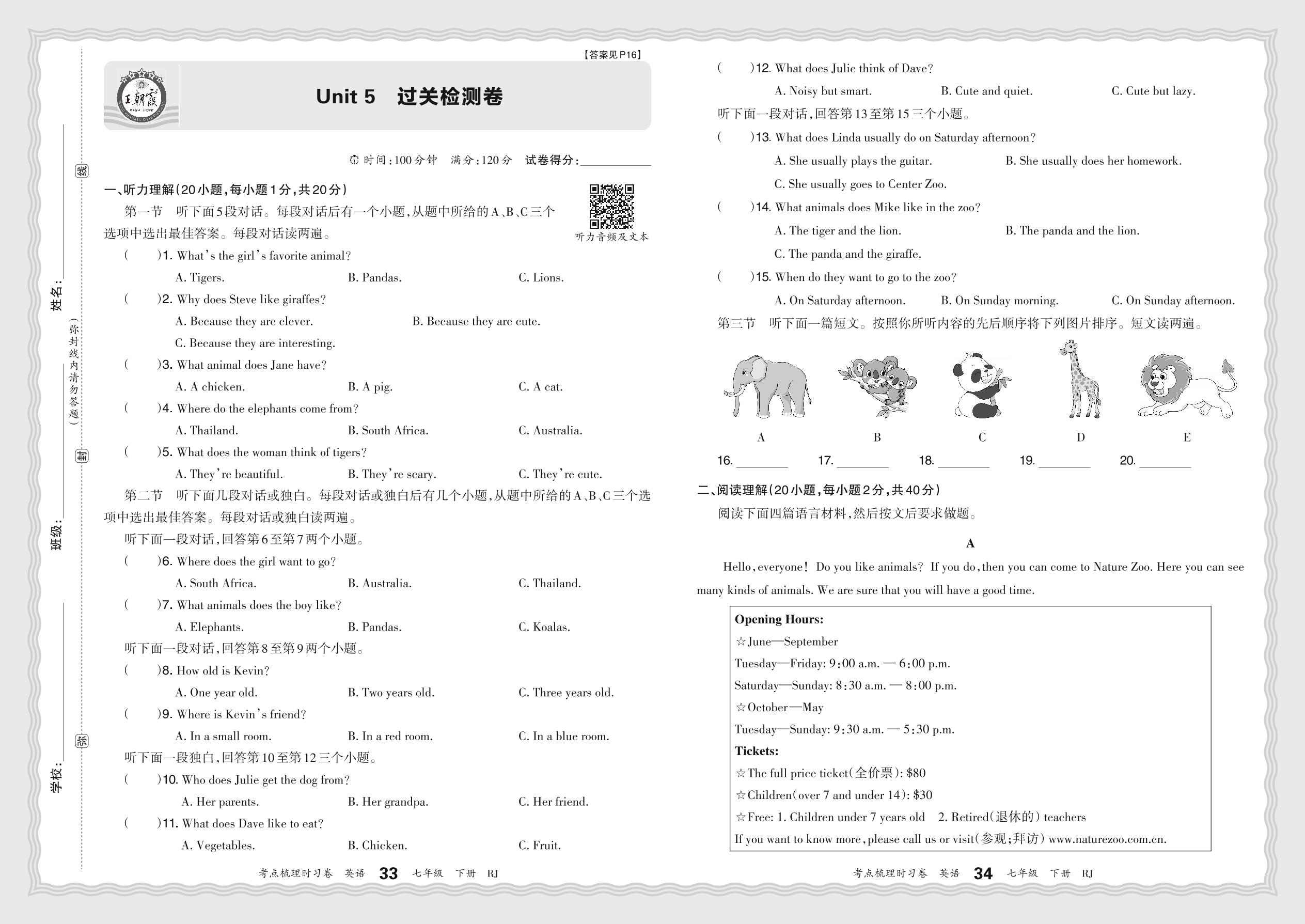 2024春下册七年级英语人教版 Unit 5 过关检测卷_R240117171609967