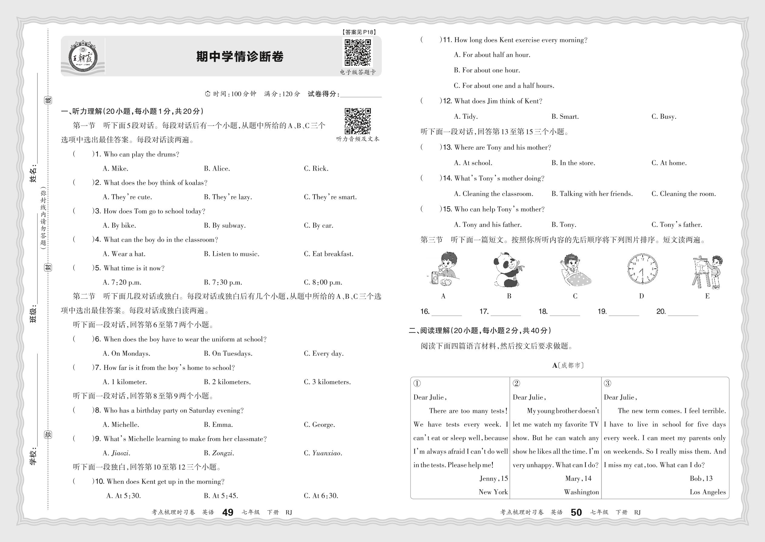 2024春下册七年级英语人教版 期中学情诊断卷_R240117171610402