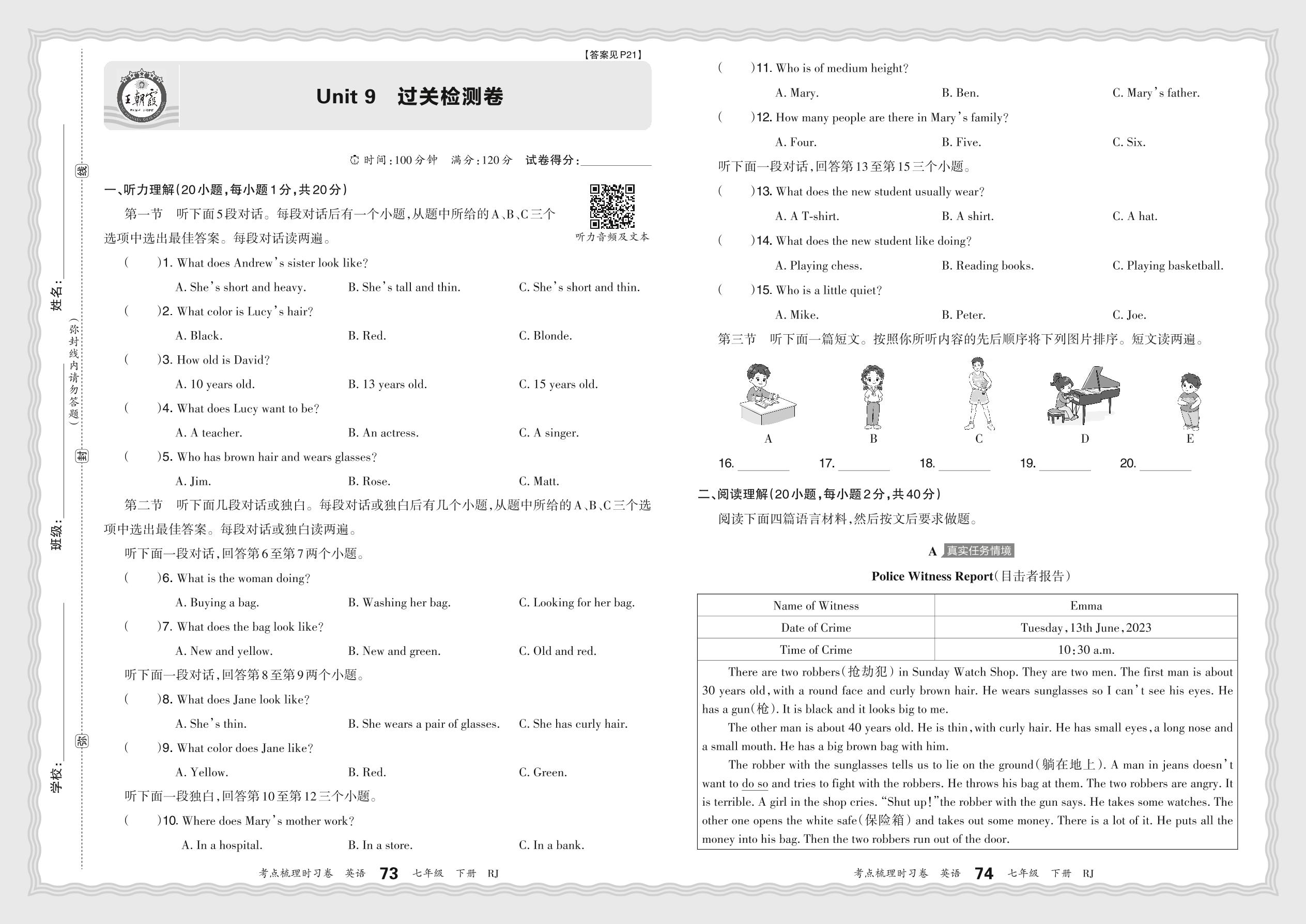 七年级英语人教版下册单元卷