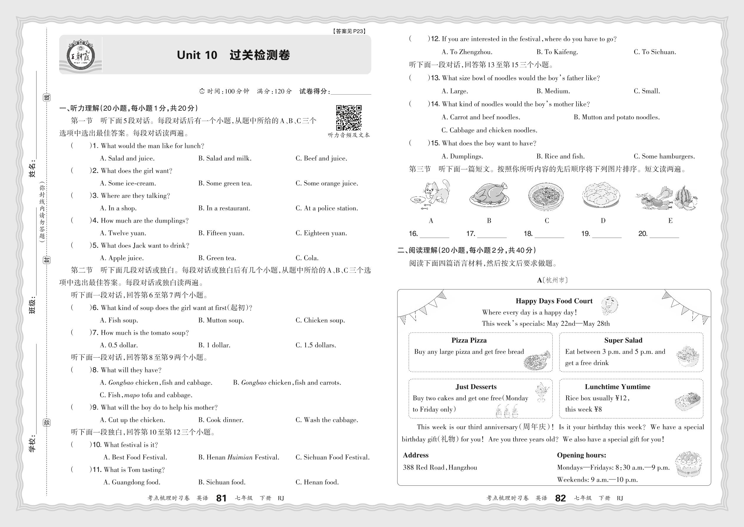 七年级英语人教版下册单元卷
