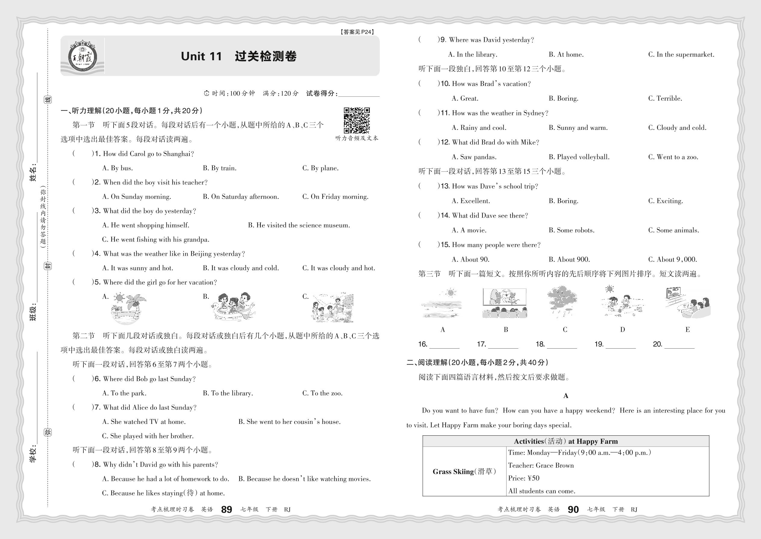2024春下册七年级英语人教版 Unit 11 过关检测卷_R240117171611010