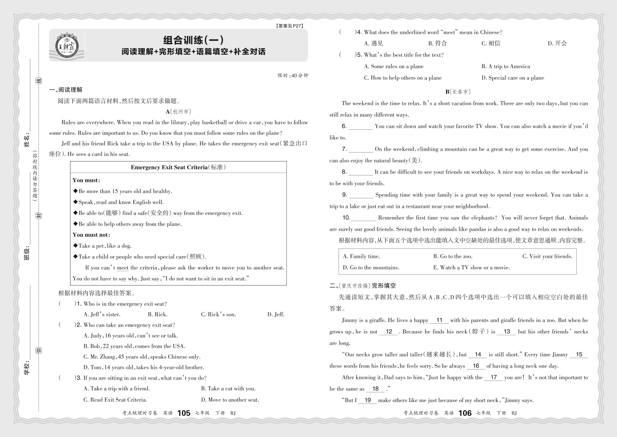 2024春下册七年级英语人教版 组合训练(一)_R240117171612568