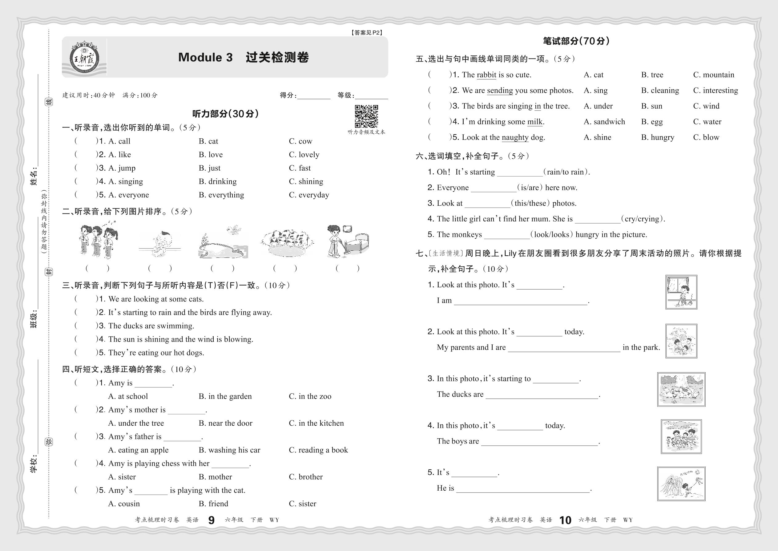 2024春下册六年级英语外研版 Module 3 过关检测卷