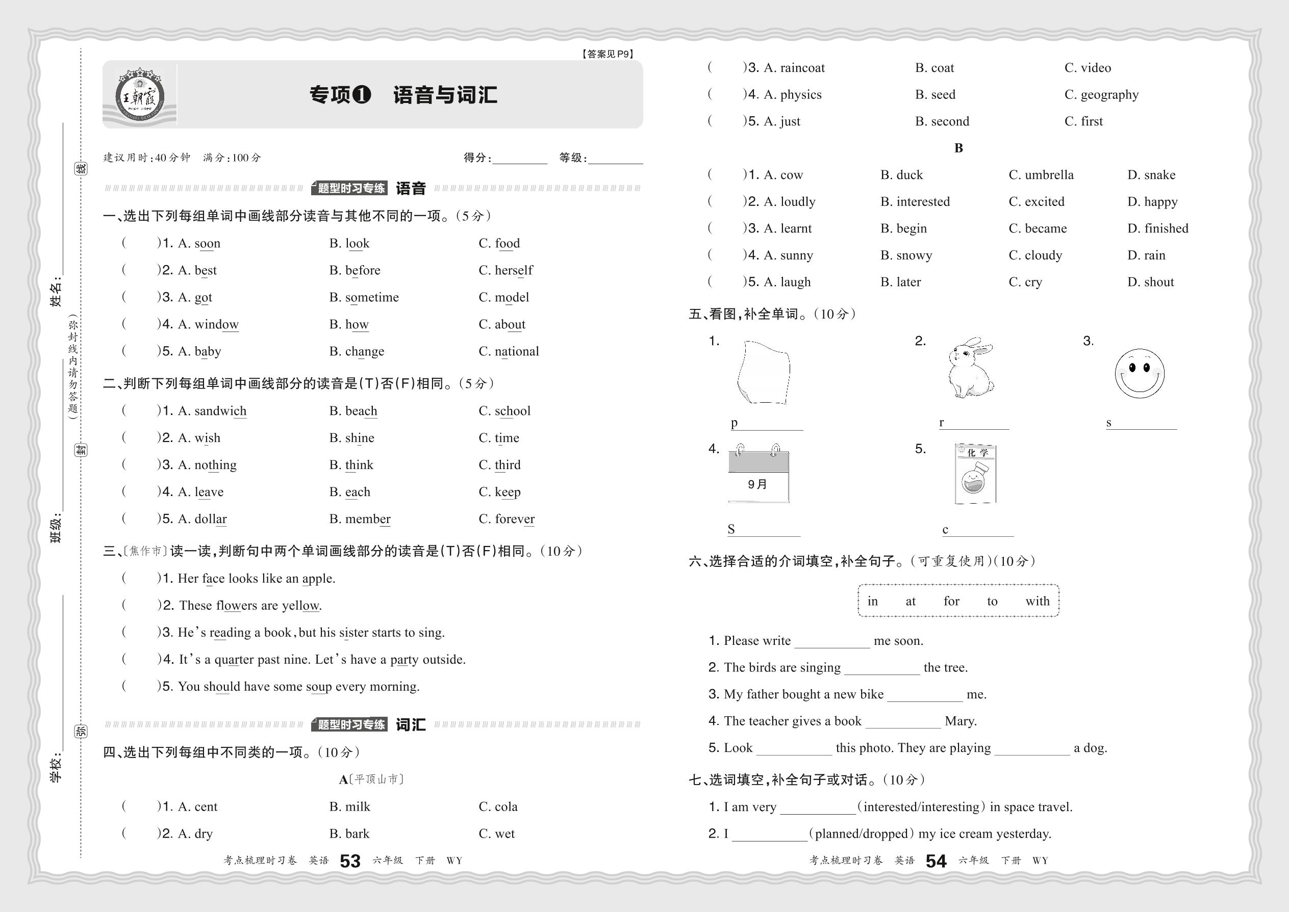 2024春下册六年级英语外研版 期末专项卷KD版·语音与词汇【1】