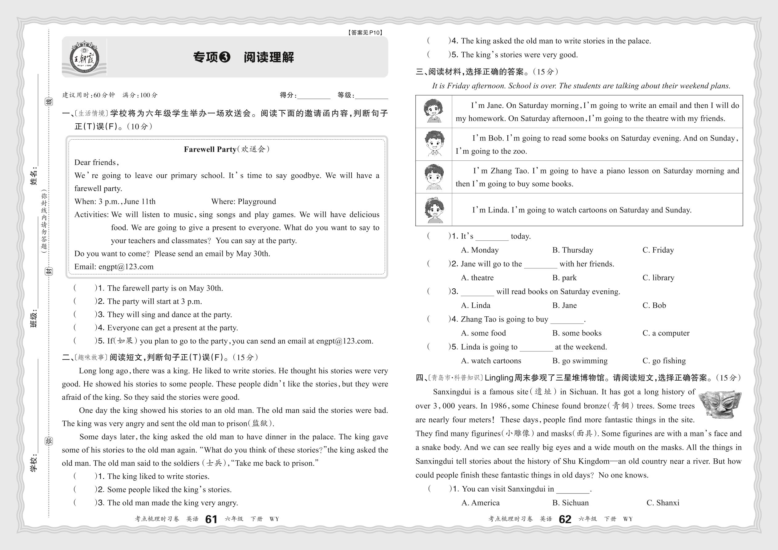2024春下册六年级英语外研版 期末专项卷KD版·阅读理解【3】