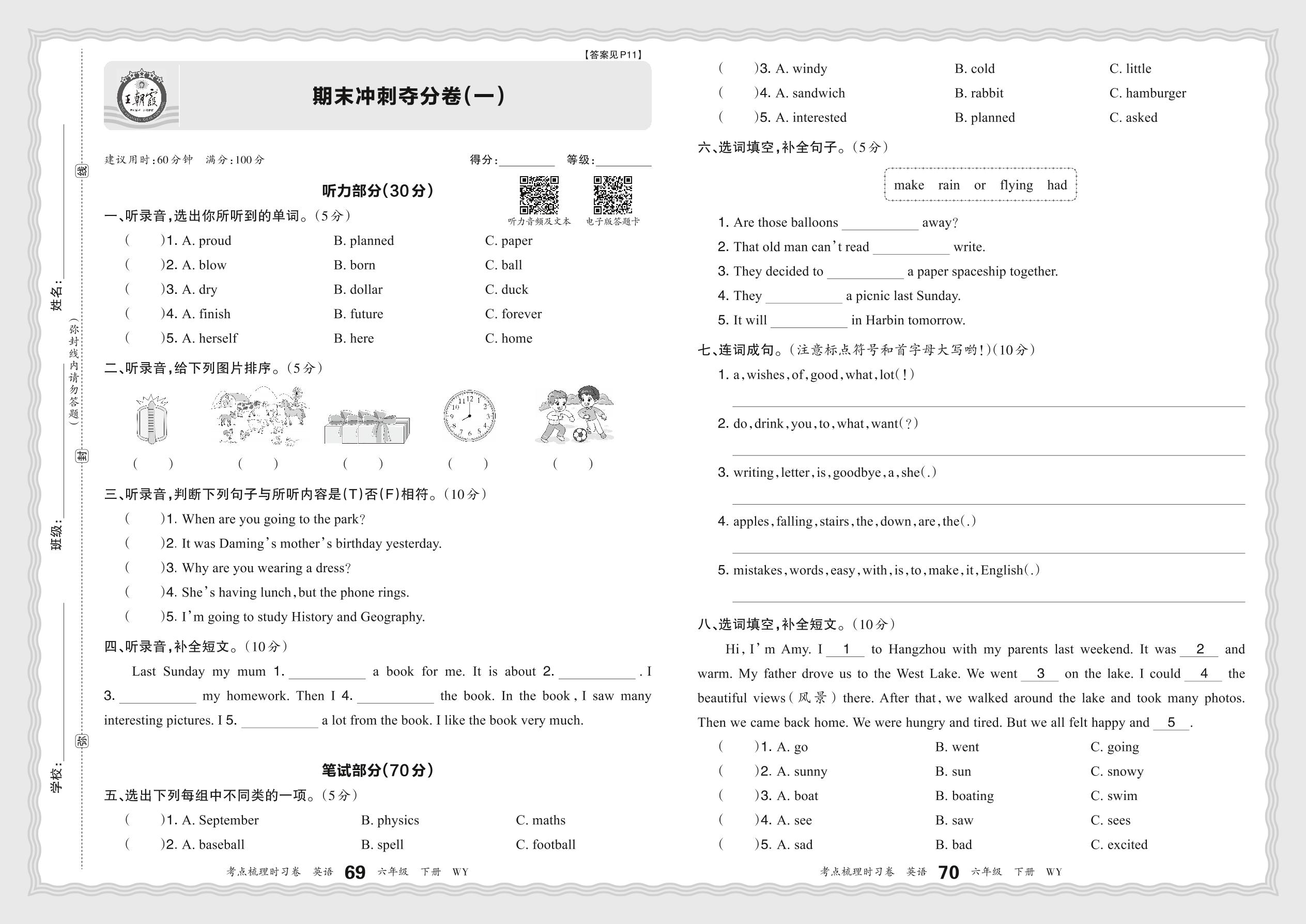 2024春下册六年级英语外研版 期末冲刺夺分卷(一)