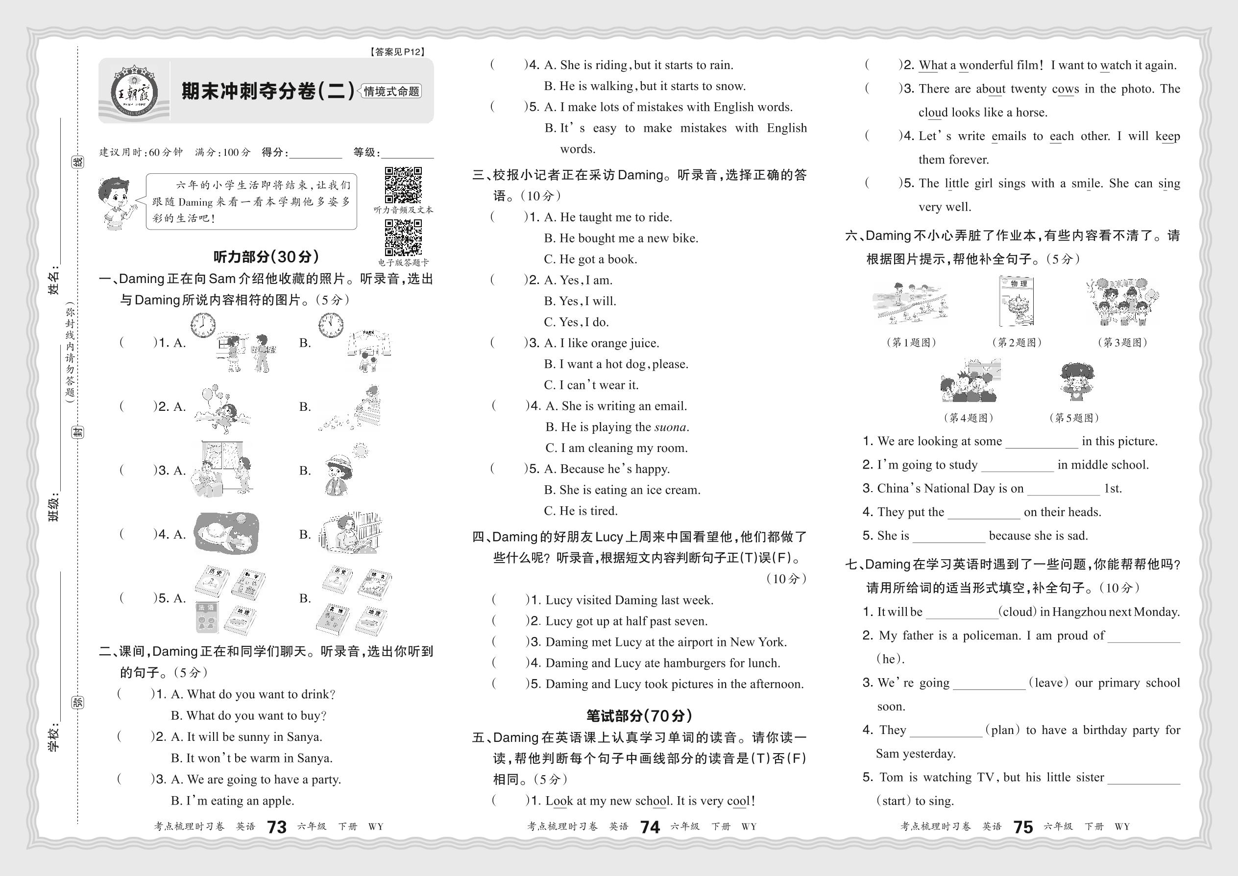 2024春下册六年级英语外研版 期末冲刺夺分卷(二)