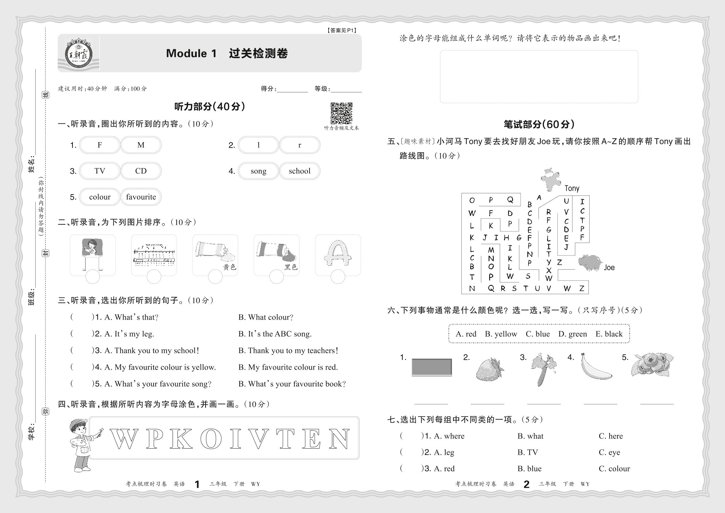 2024春下册三年级英语外研版 Module 1 过关检测卷