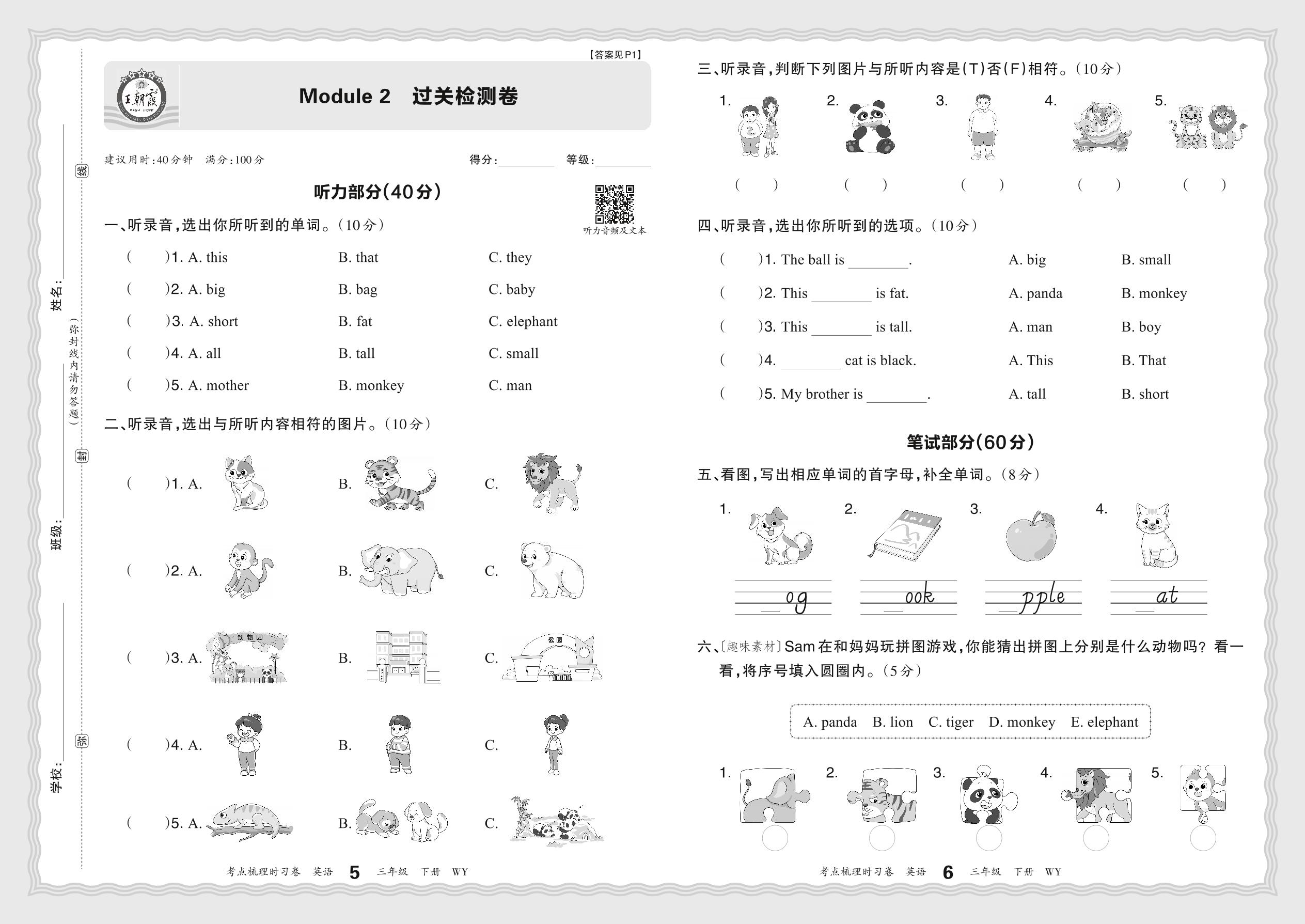 2024春下册三年级英语外研版 Module 2 过关检测卷