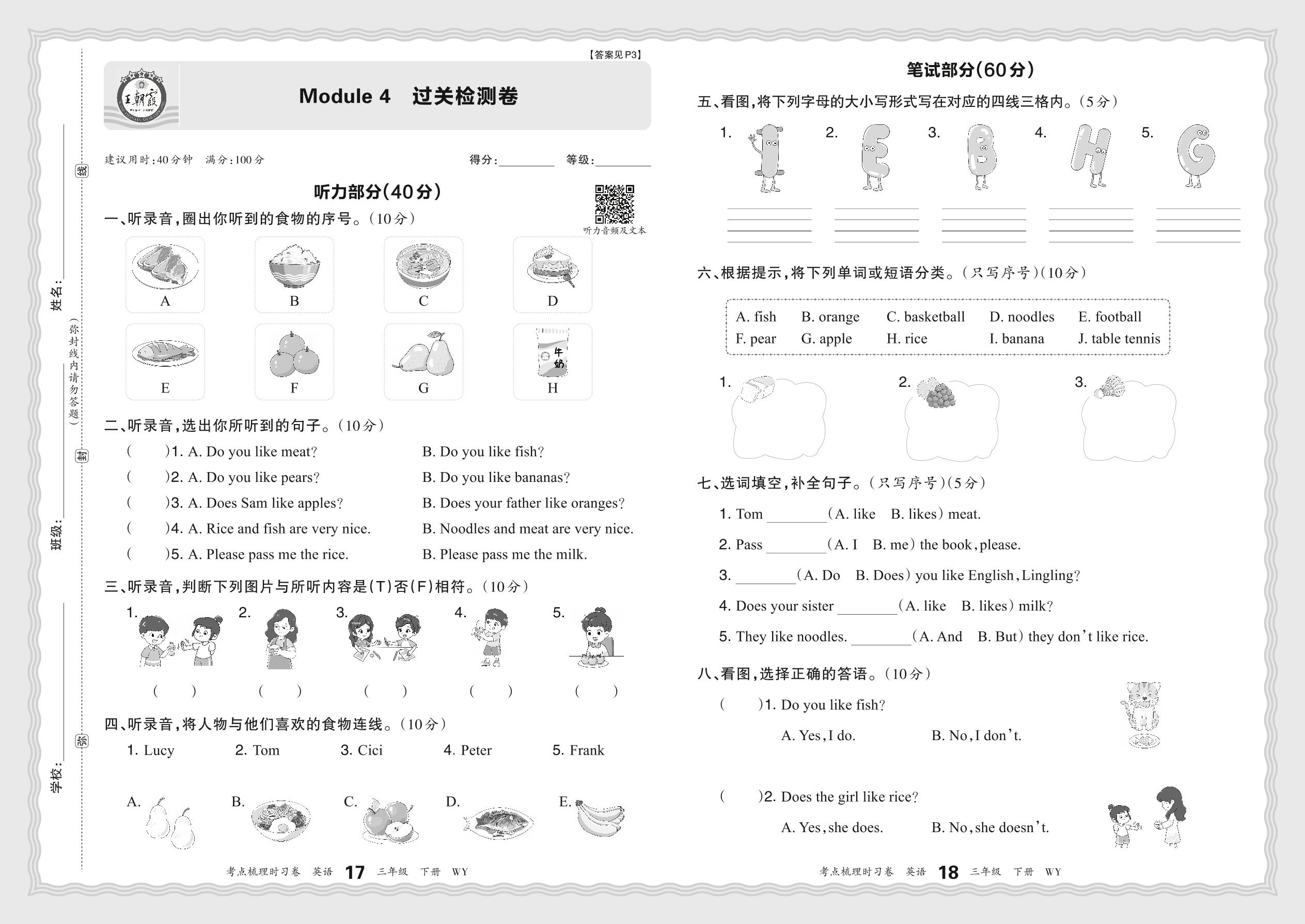 2024春下册三年级英语外研版 Module 4 过关检测卷