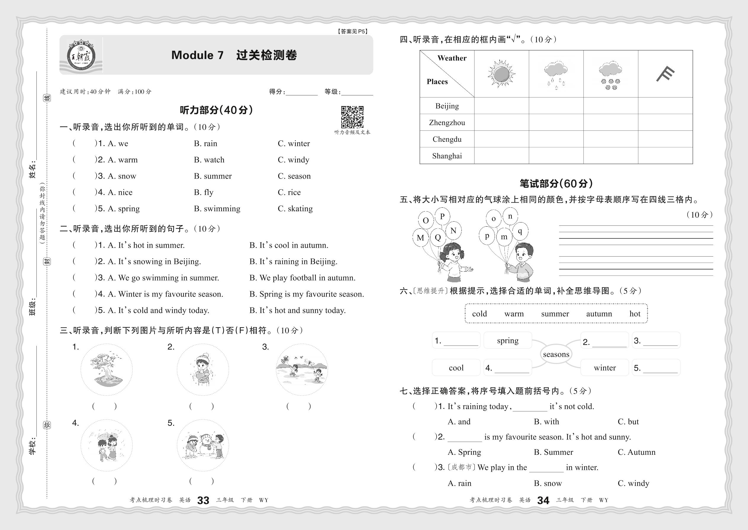 2024春下册三年级英语外研版 Module 7 过关检测卷