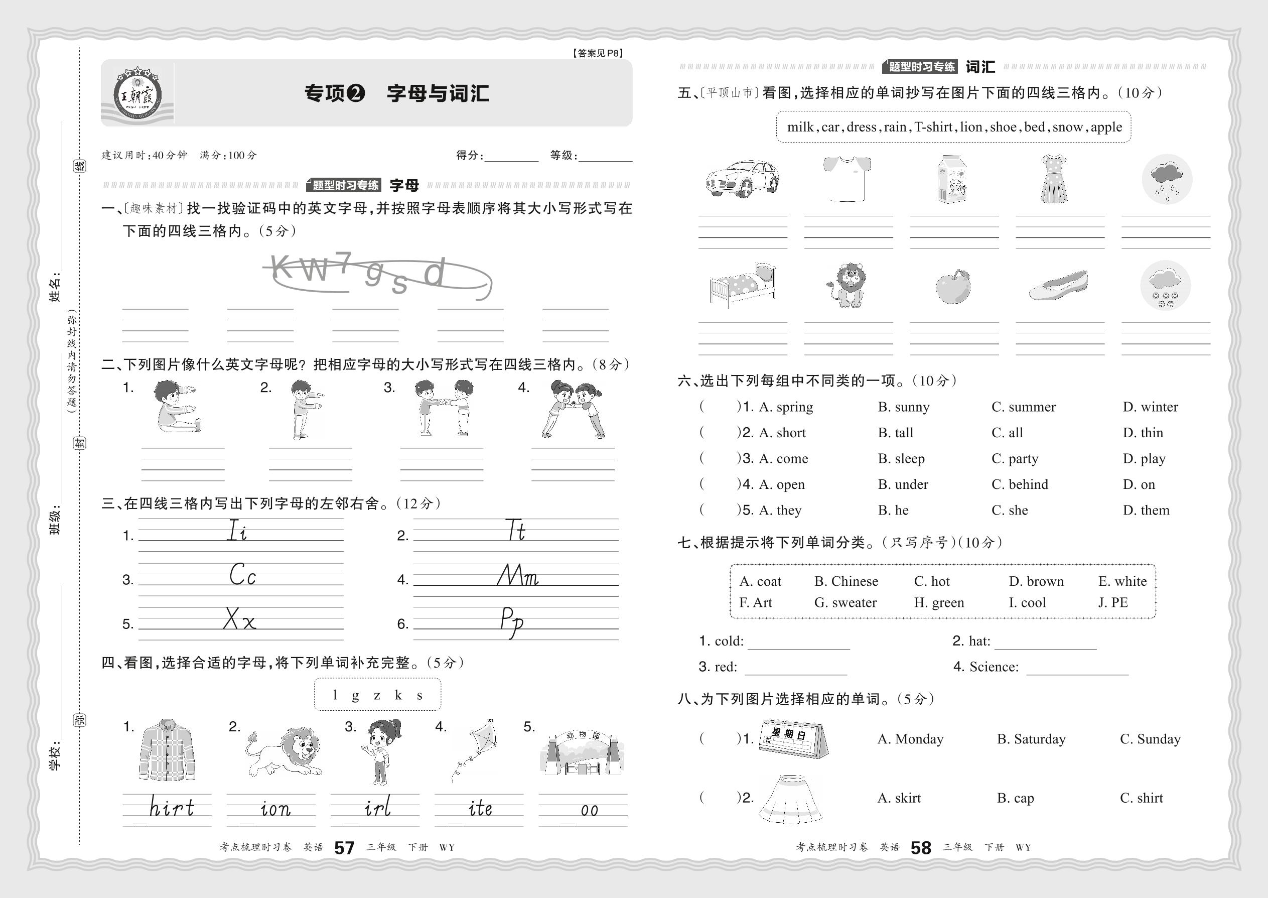 2024春下册三年级英语外研版 期末专项卷KD版·字母与词汇【2】