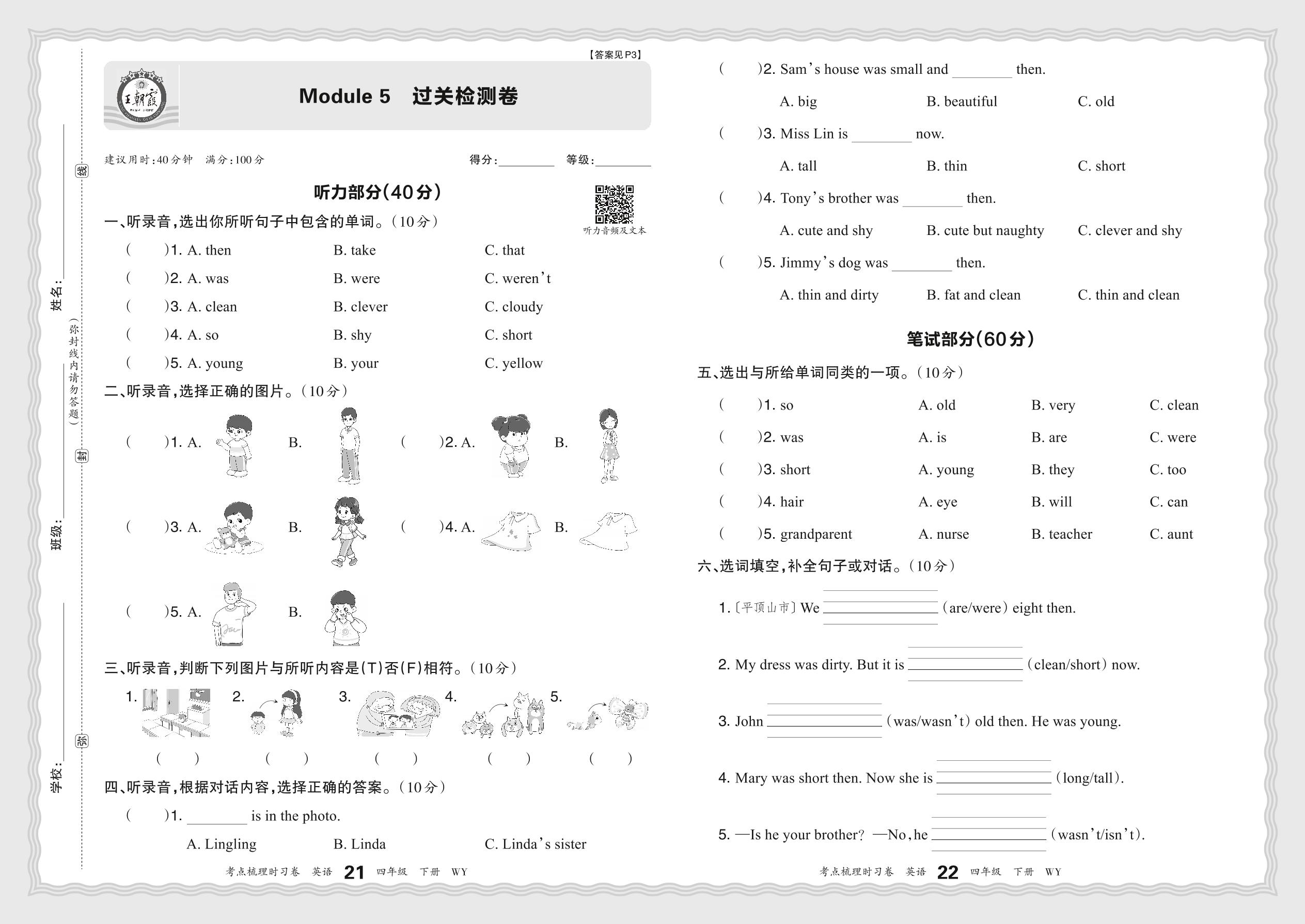 2024春下册四年级英语外研版 Module 5 过关检测卷