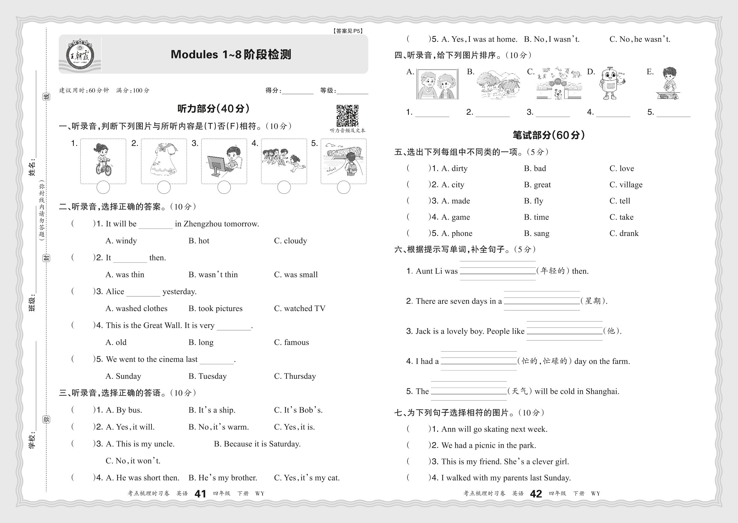 四年级英语外研版(三起始)下册单元卷
