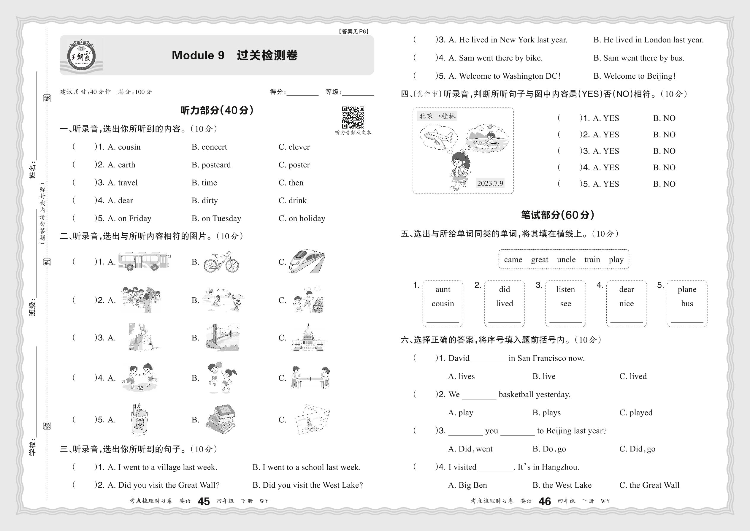 2024春下册四年级英语外研版 Module 9 过关检测卷