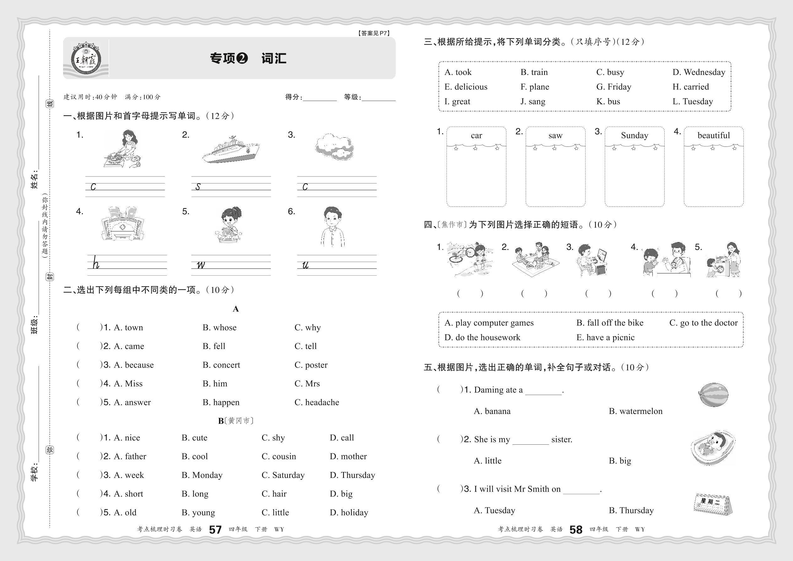 2024春下册四年级英语外研版 期末专项卷KD版·词汇【2】