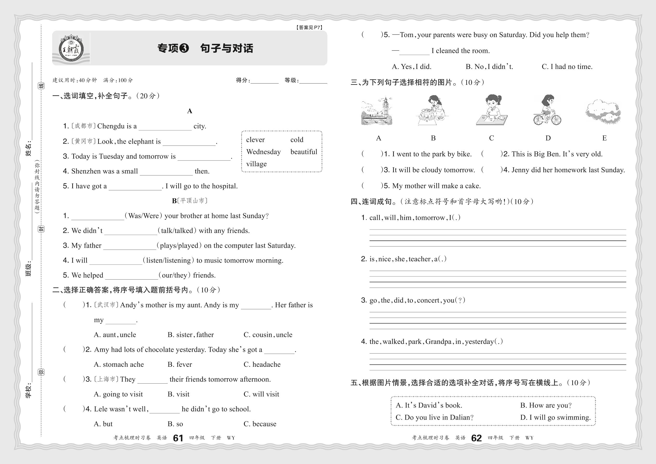 2024春下册四年级英语外研版 期末专项卷KD版·句子与对话【3】