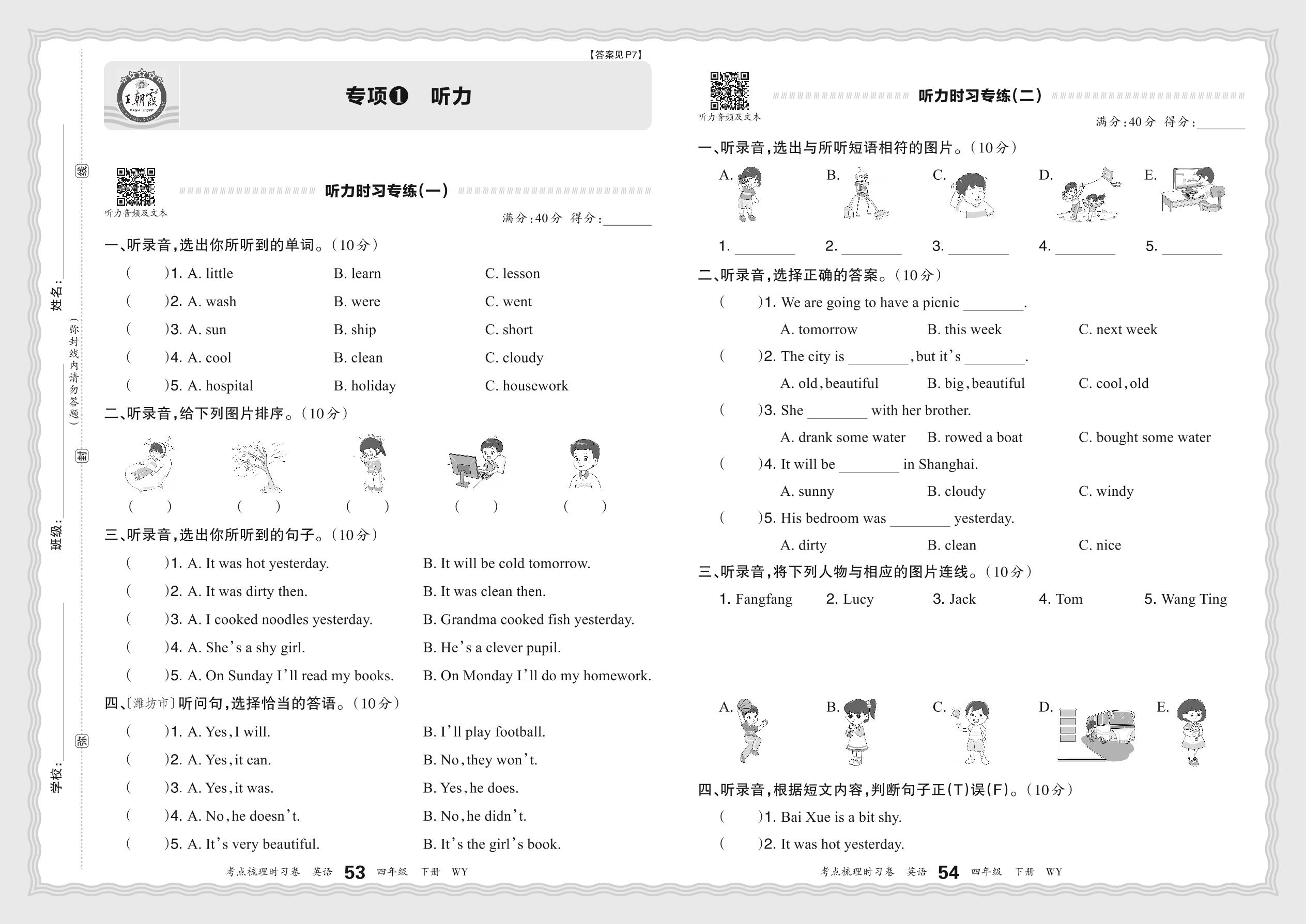 2024春下册四年级英语外研版 期末专项卷KD版·听力【1】