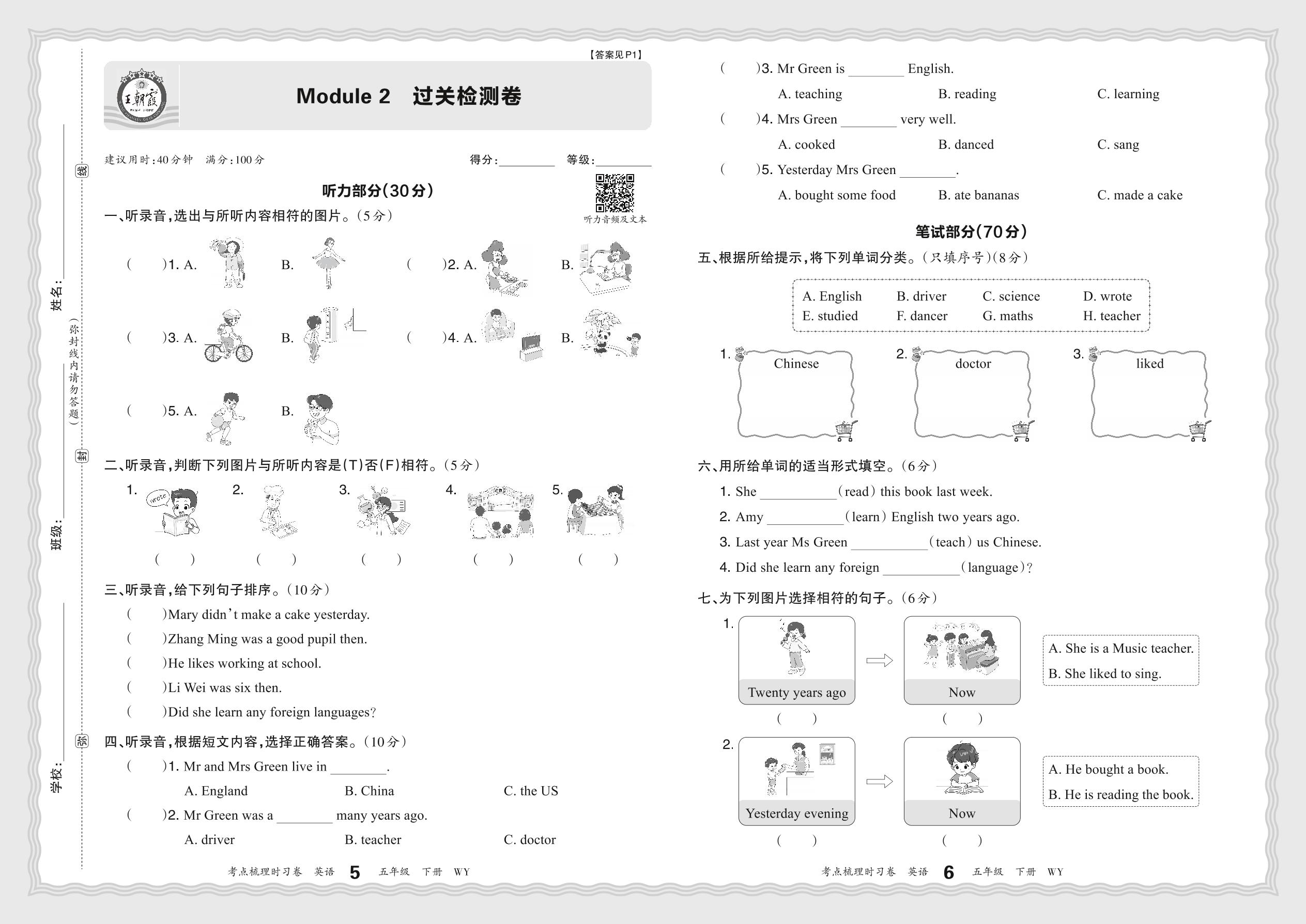 2024春下册五年级英语外研版 Module 2 过关检测卷