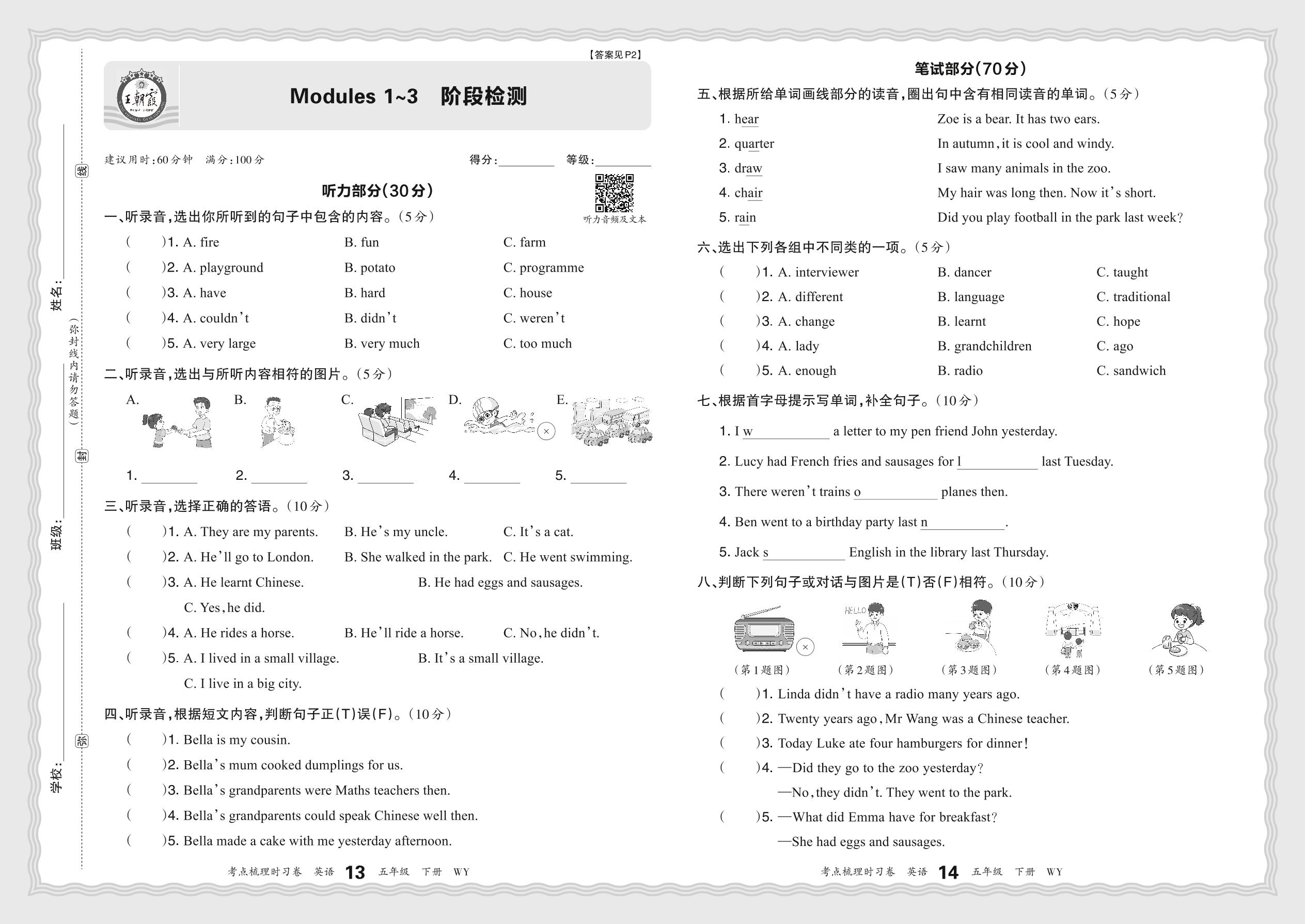 2024春下册五年级英语外研版 Module 1~3 阶段检测