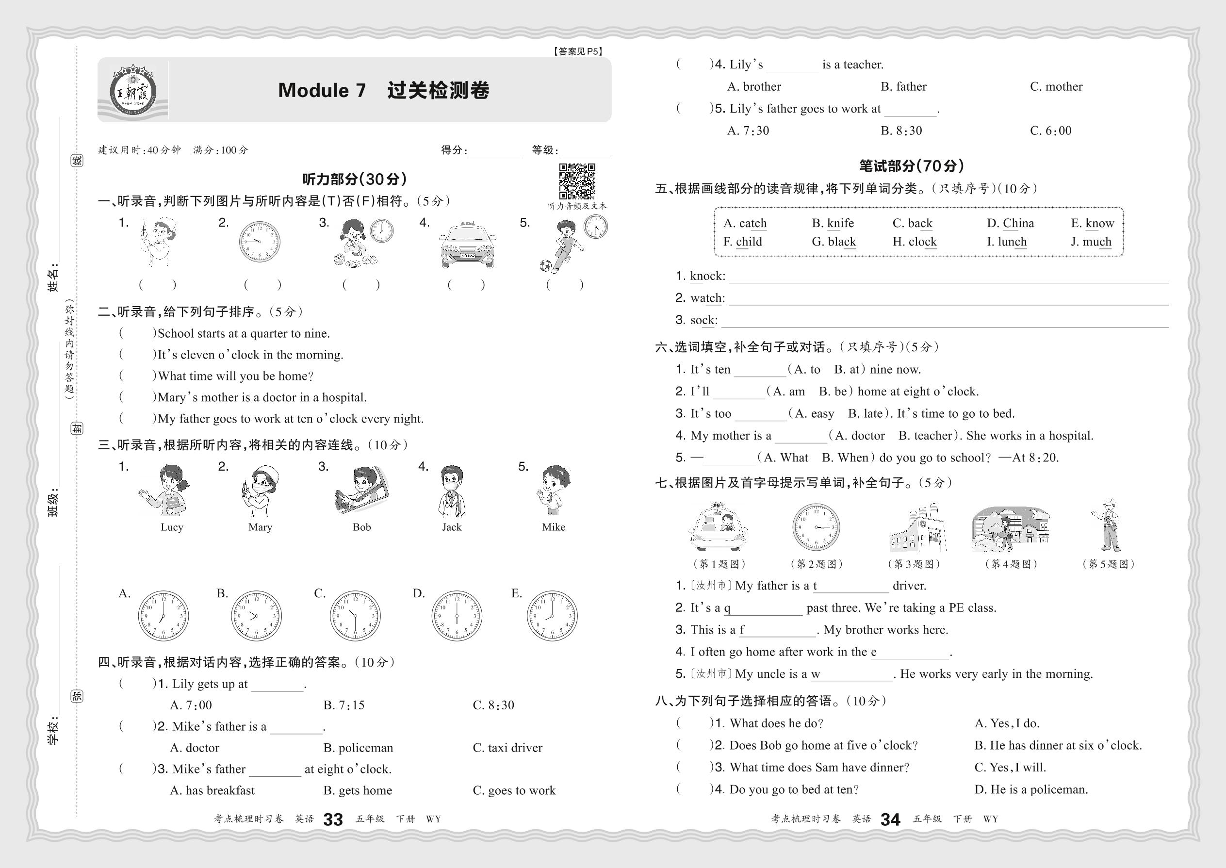 2024春下册五年级英语外研版 Module 7 过关检测卷