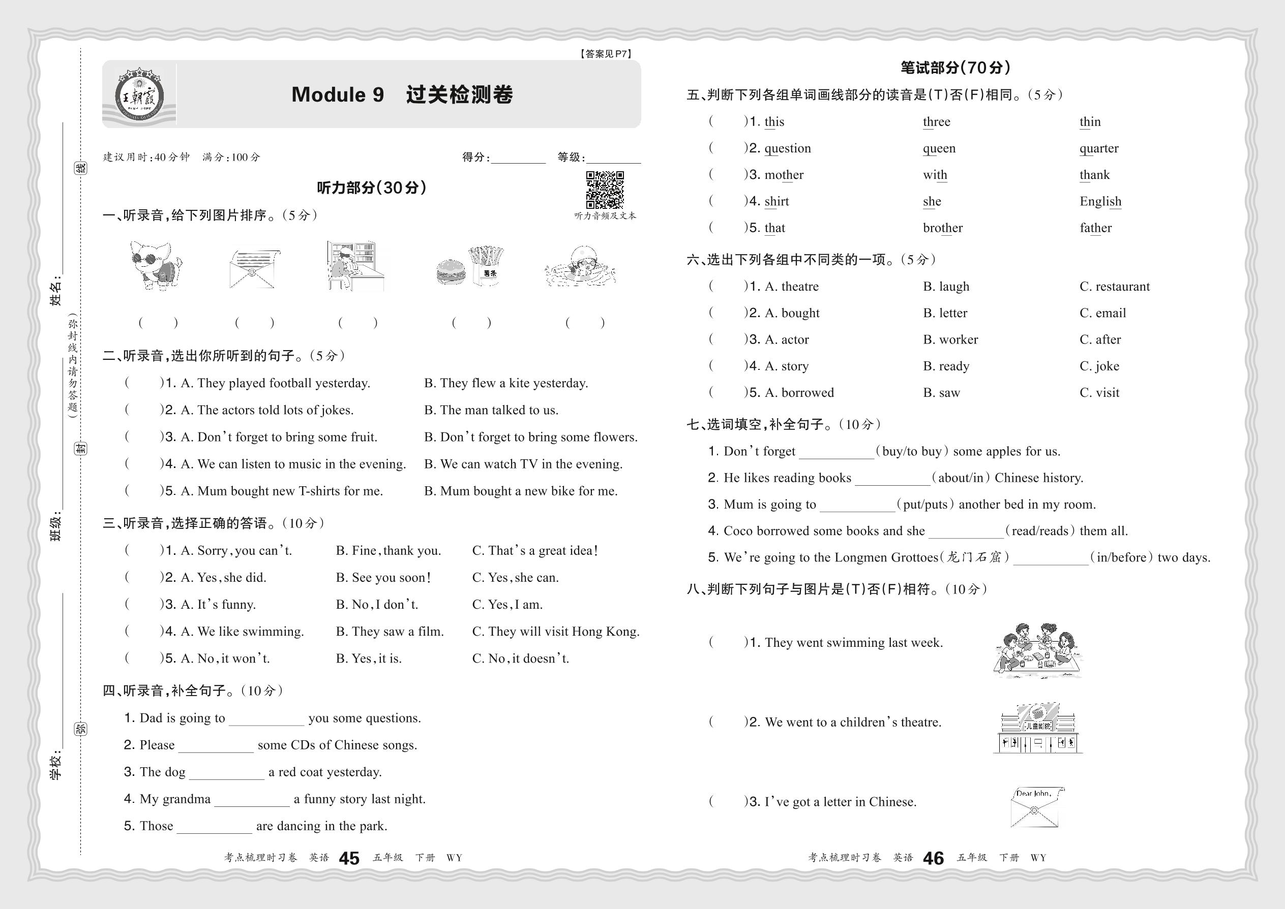2024春下册五年级英语外研版 Module 9 过关检测卷