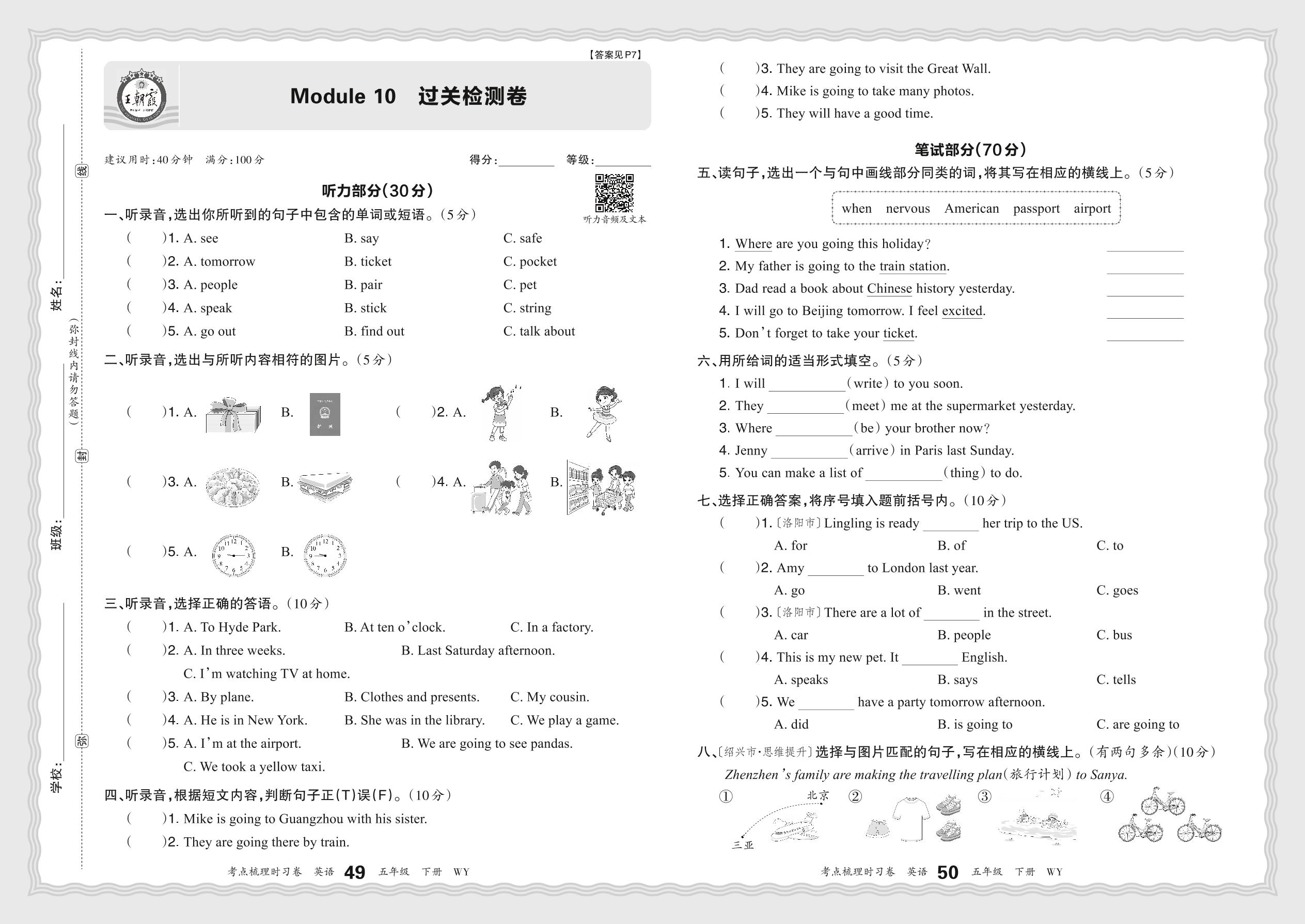 2024春下册五年级英语外研版 Module 10 过关检测卷