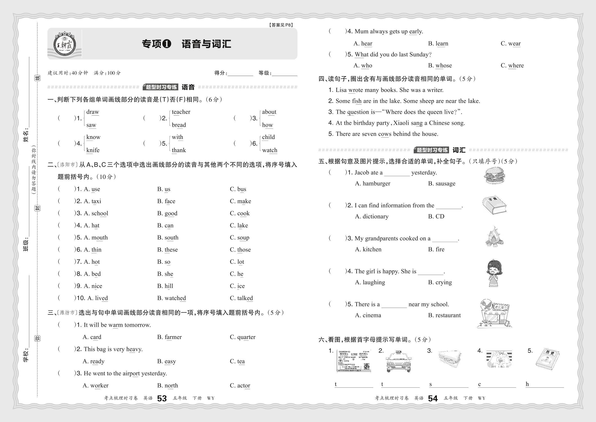 2024春下册五年级英语外研版 期末专项卷KD版·语音与词汇【1】