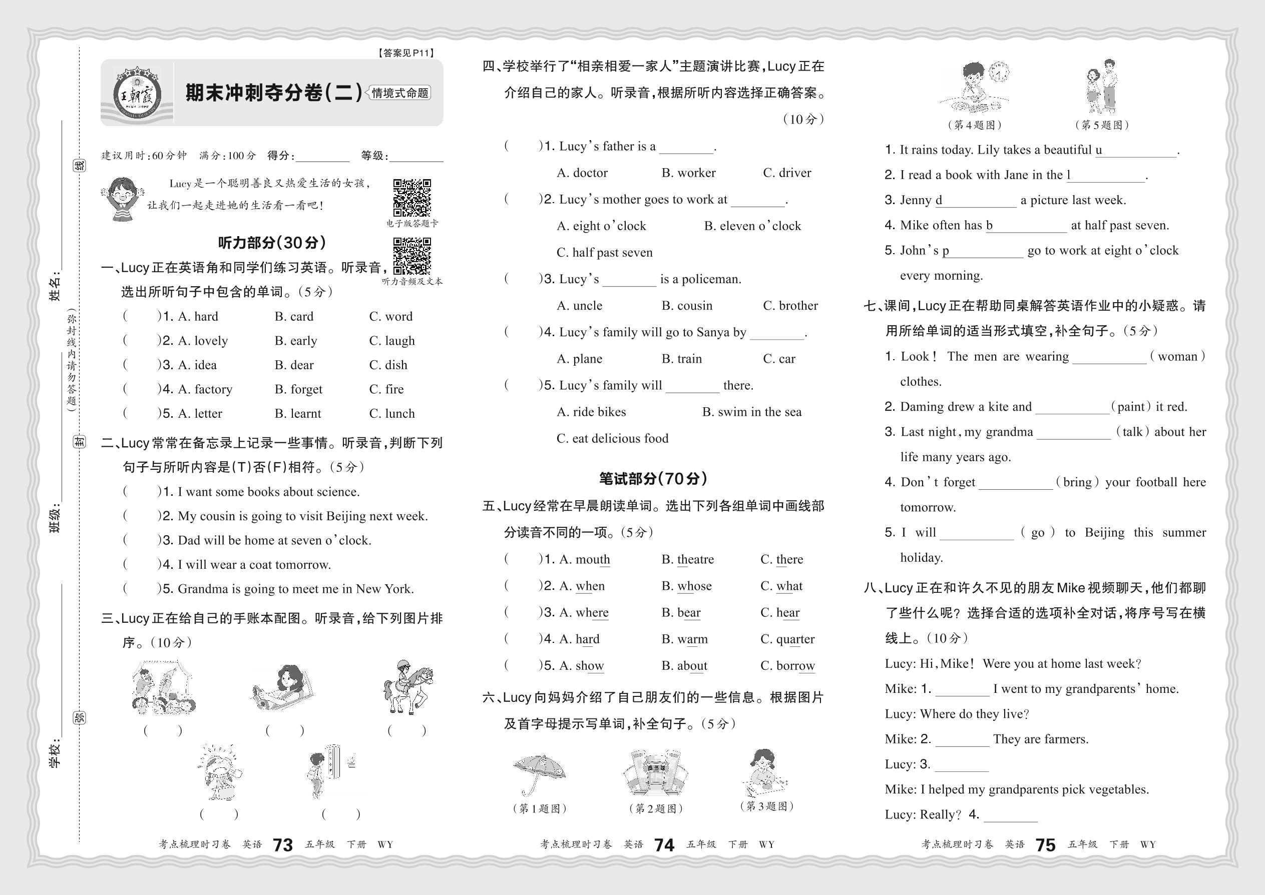 五年级英语外研版(三起始)下册期末卷