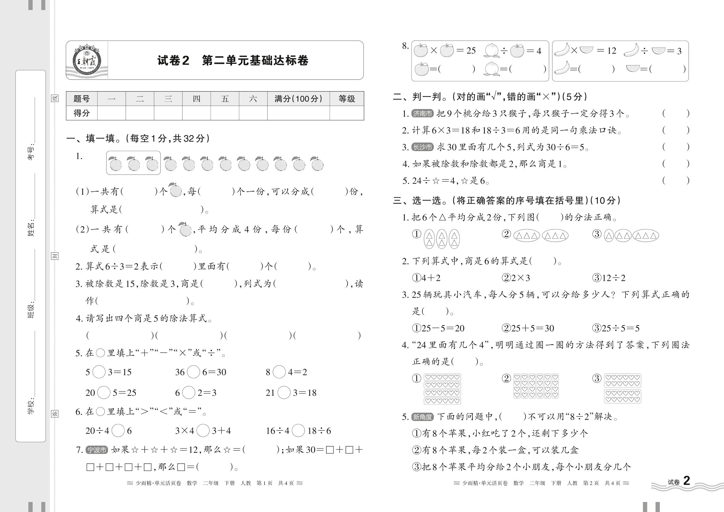 2024春下册二年级数学人教版 第二单元基础达标卷【2】