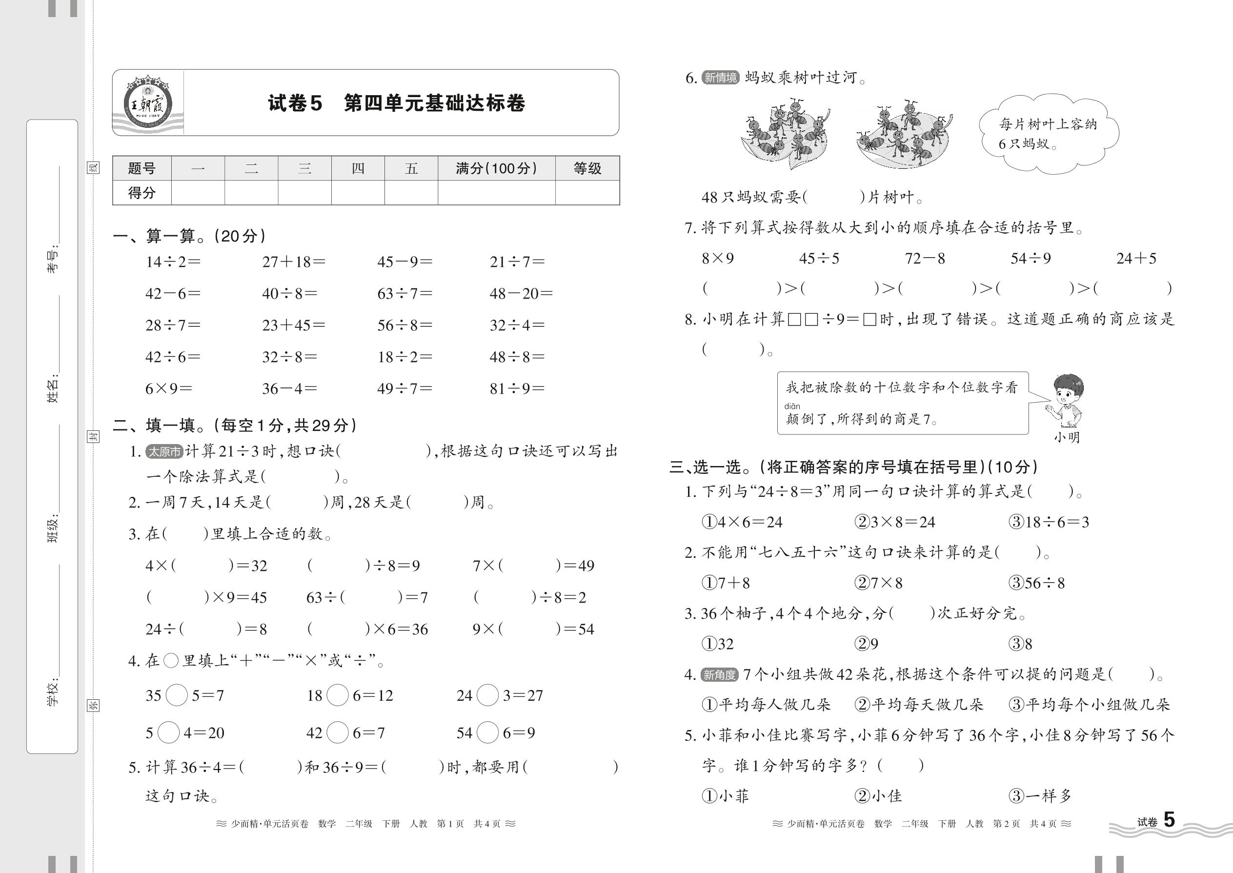 2024春下册二年级数学人教版 第四单元基础达标卷【5】
