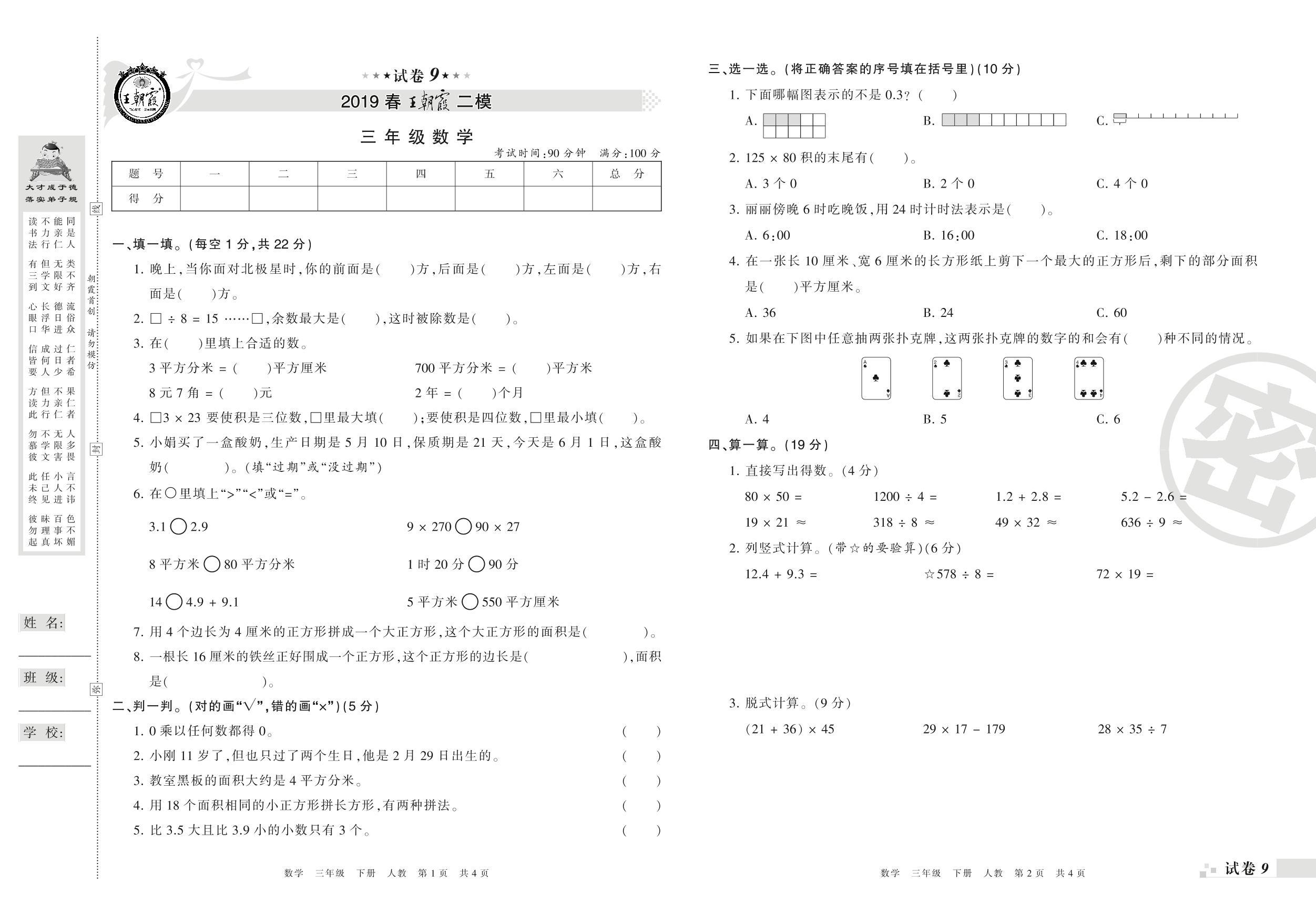 王朝霞期末模拟卷三年级下册数学(人教版)_R21080494954【9】