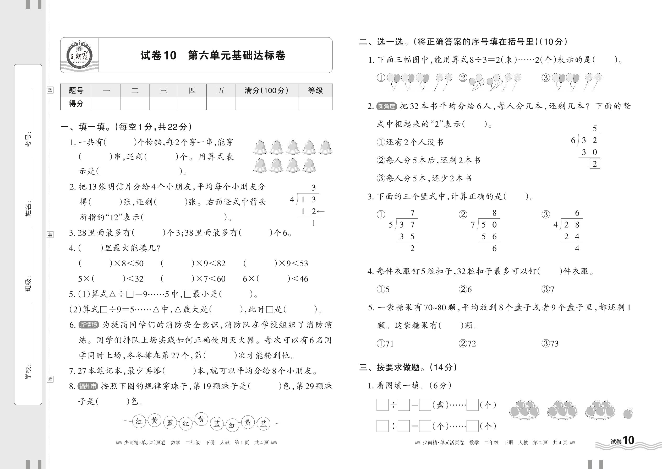 2024春下册二年级数学人教版 第六单元基础达标卷【10】