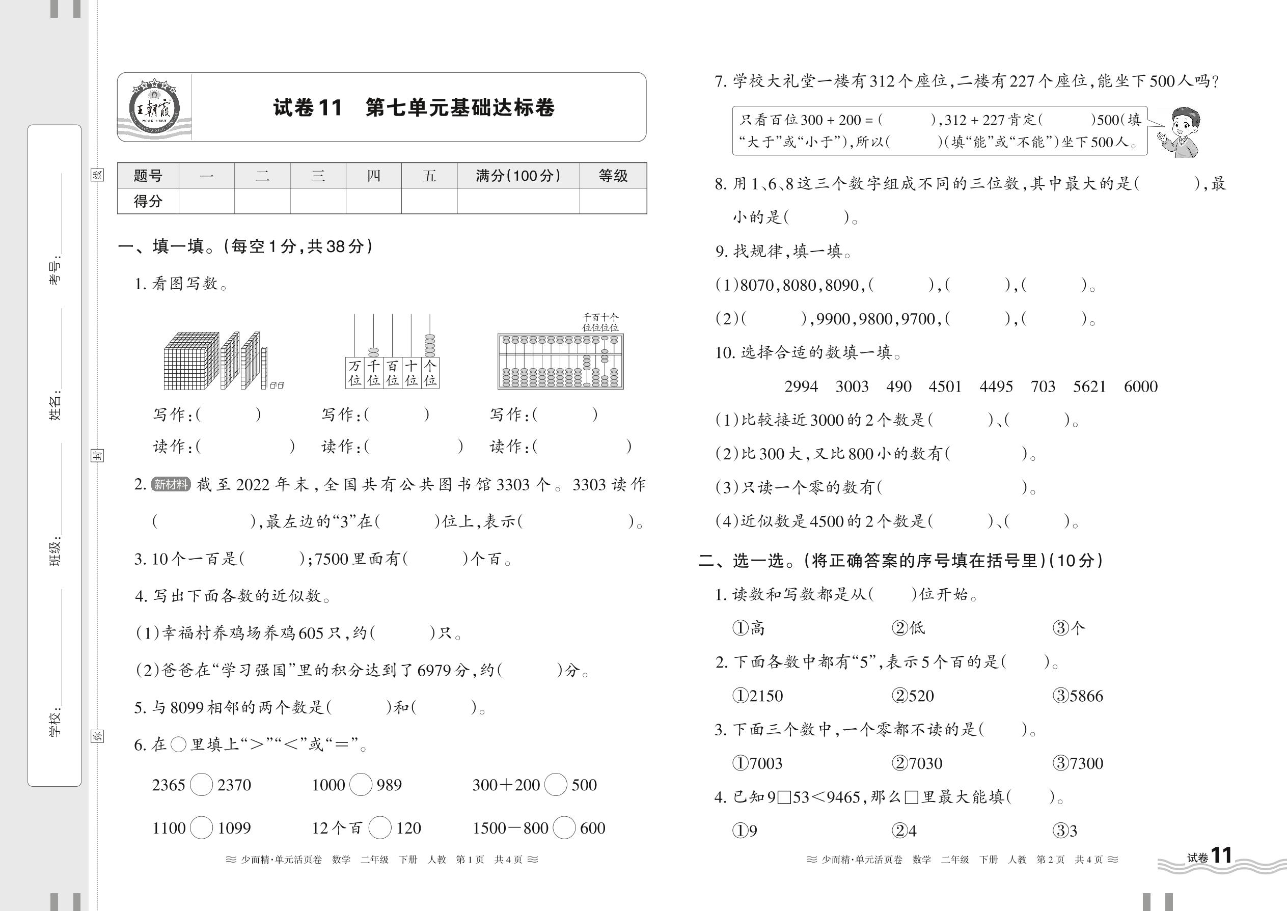 2024春下册二年级数学人教版 第七单元基础达标卷【11】