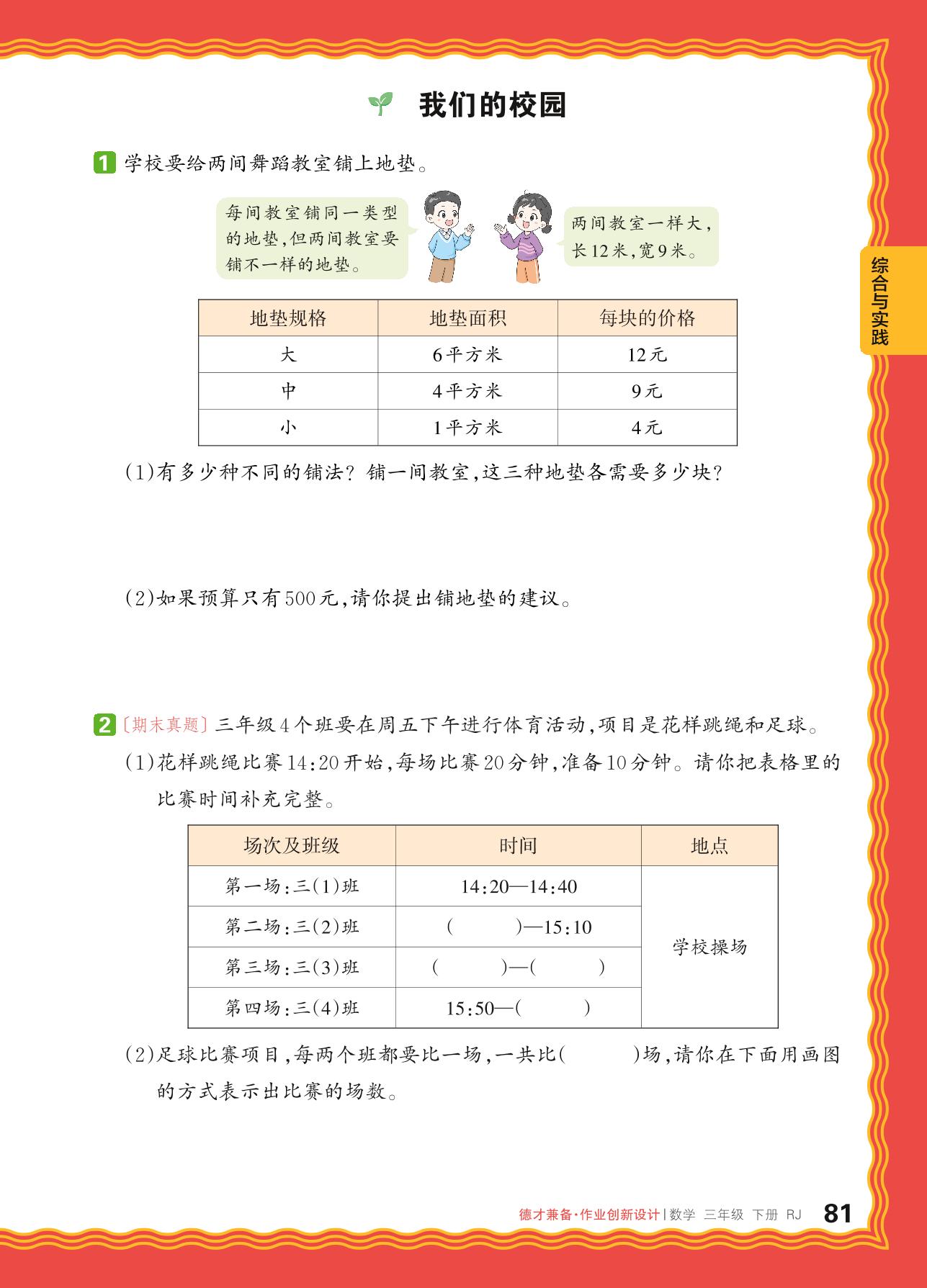 2024春下册三年级数学人教版 综合与实践——我们的校园