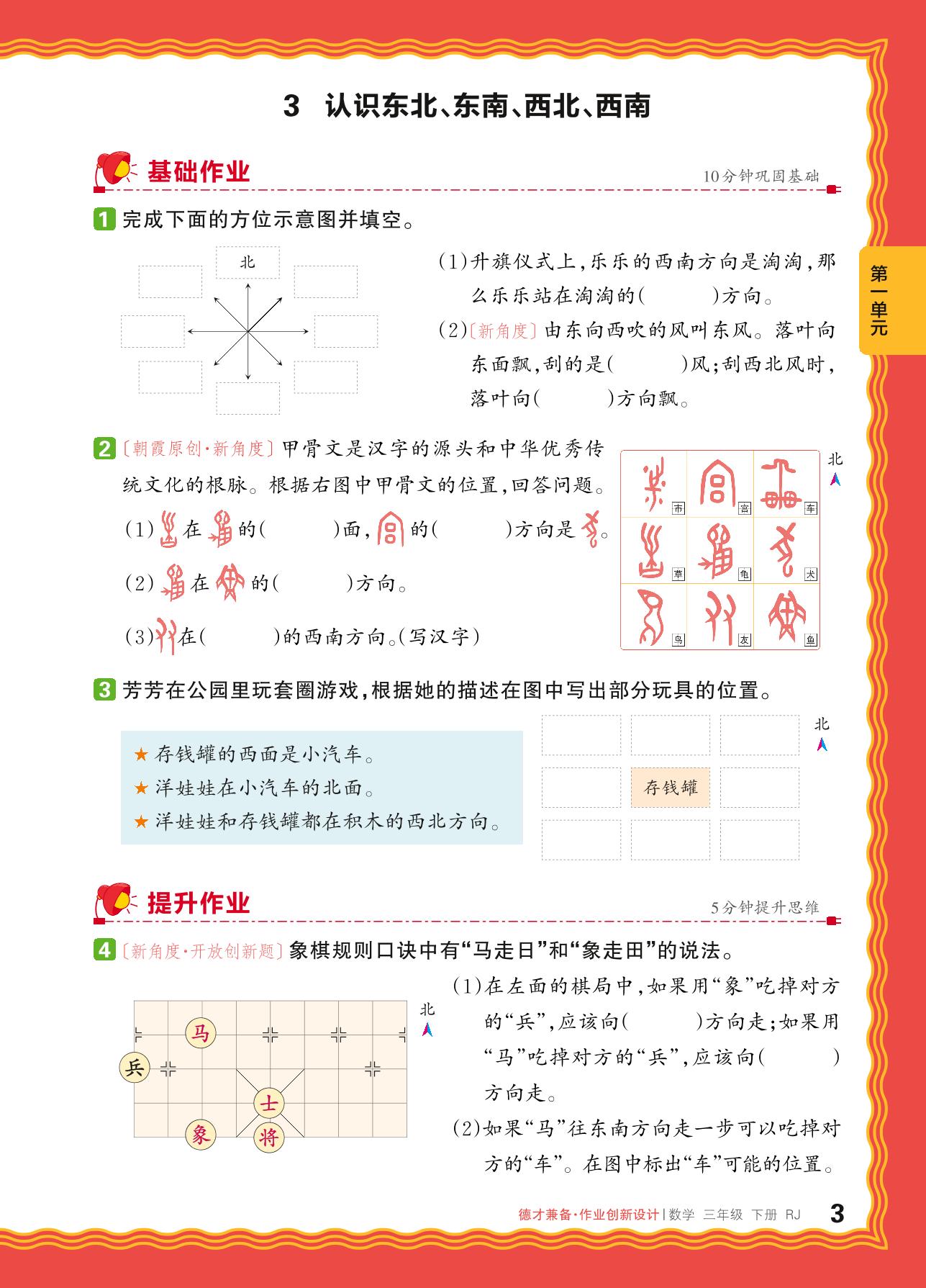 2024春下册三年级数学人教版 第一单元 位置与方向(一)——3. 认识东北、东南、西北、西南