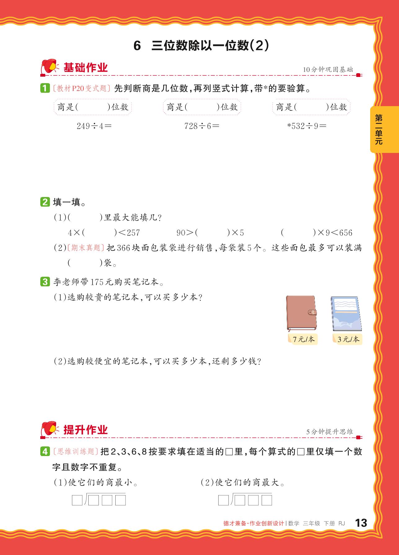 2024春下册三年级数学人教版 第二单元 除数是一位数的除法——6. 三位数除以一位数(2)