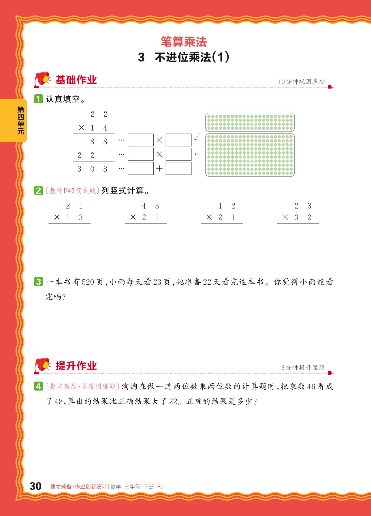 2024春下册三年级数学人教版 第四单元 两位数乘两位数——3. 不进位乘法(1)