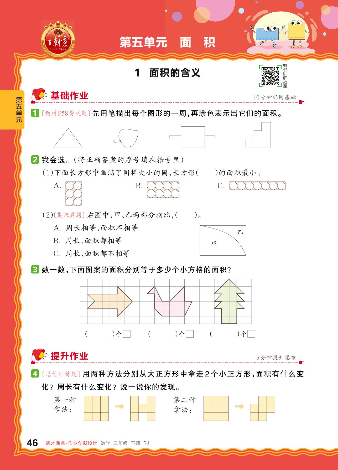 2024春下册三年级数学人教版 第五单元 面积——1. 面积的含义