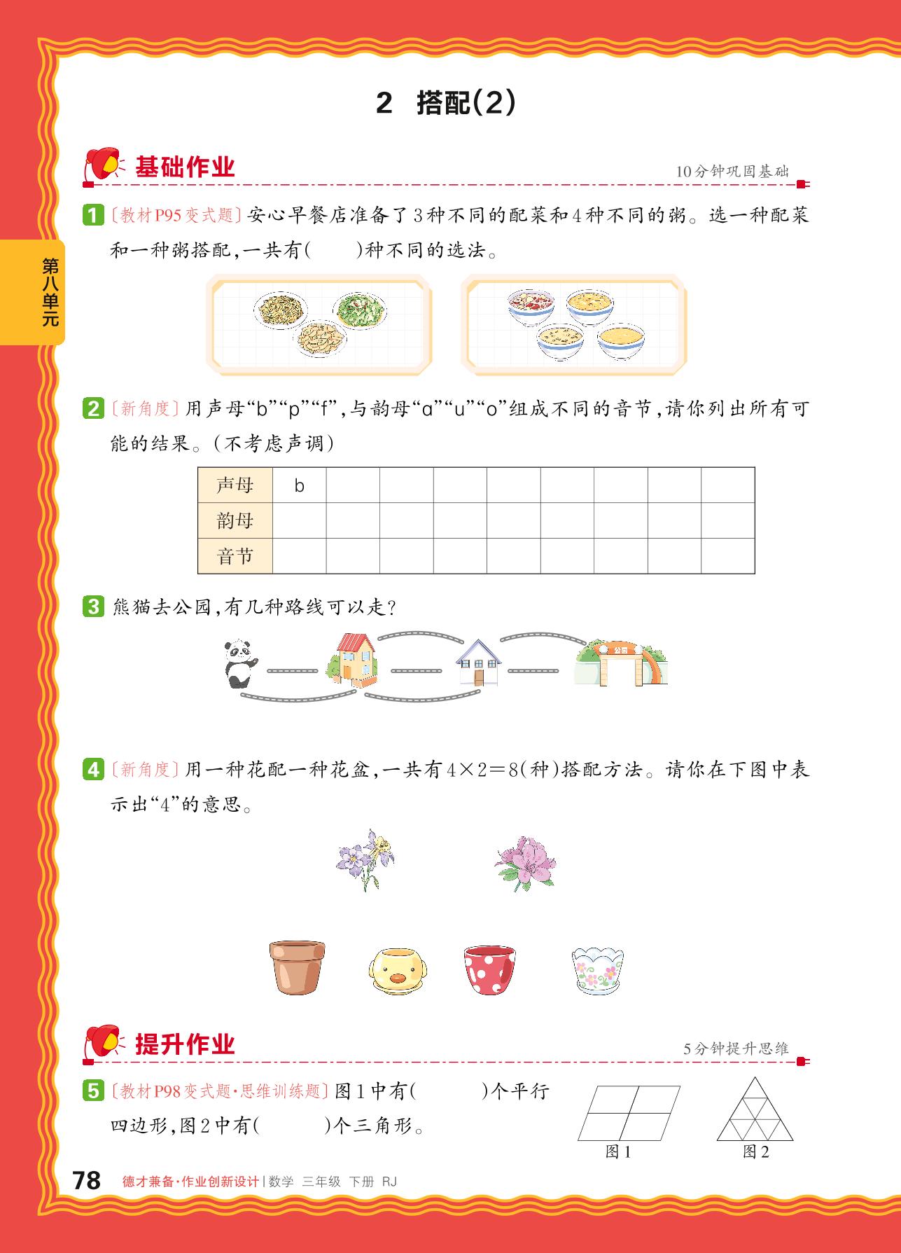 2024春下册三年级数学人教版 第八单元 数学广角——搭配(二)——搭配(2)