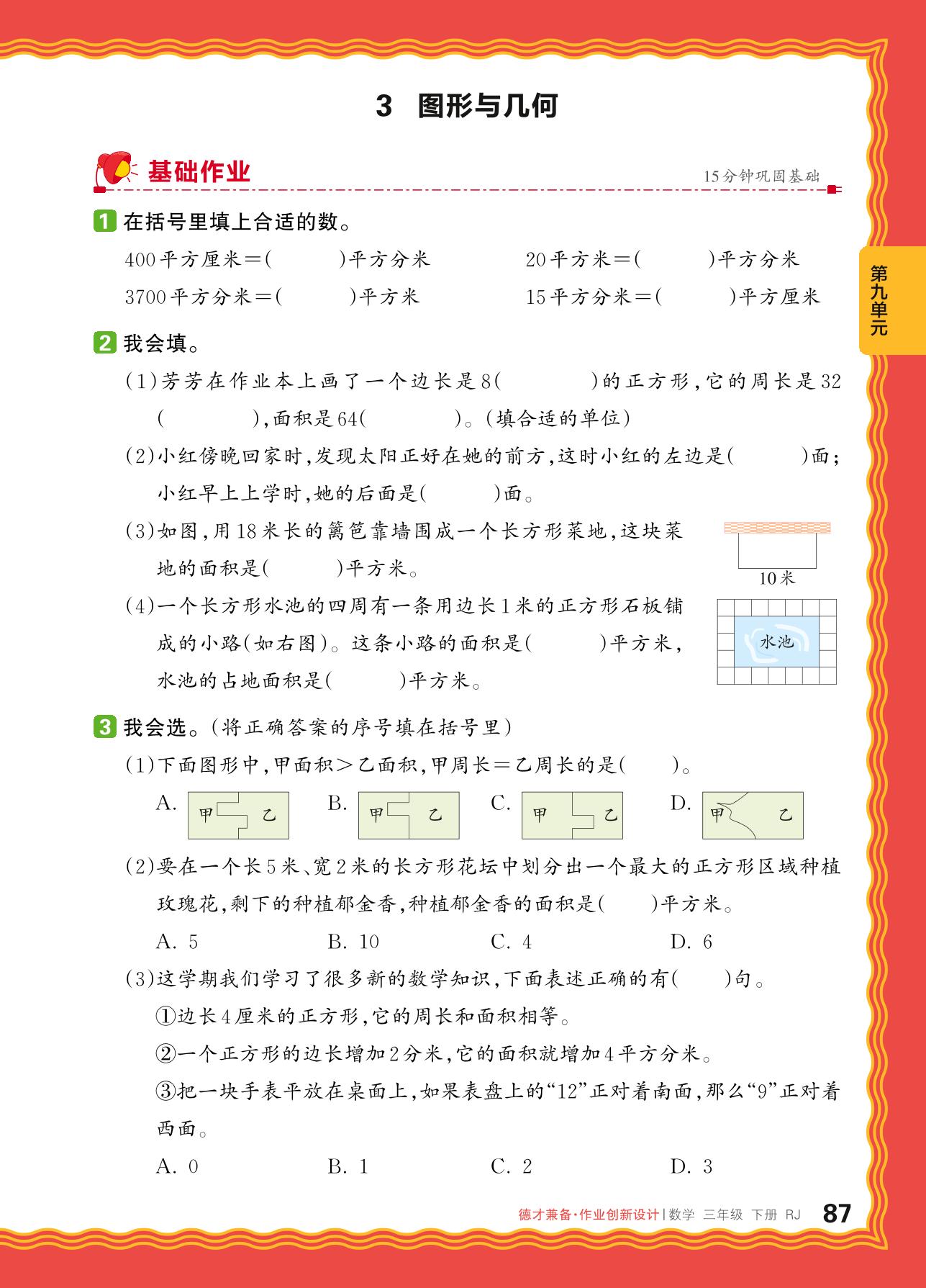 2024春下册三年级数学人教版 第九单元 总复习——3. 图形与几何