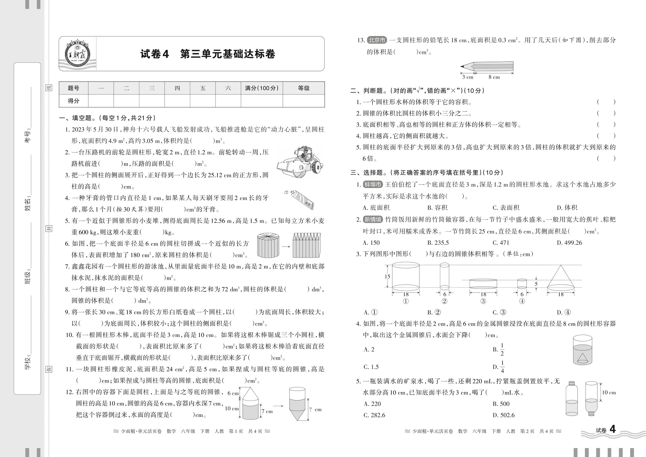 2024春下册六年级数学人教版 第三单元基础达标卷【4】