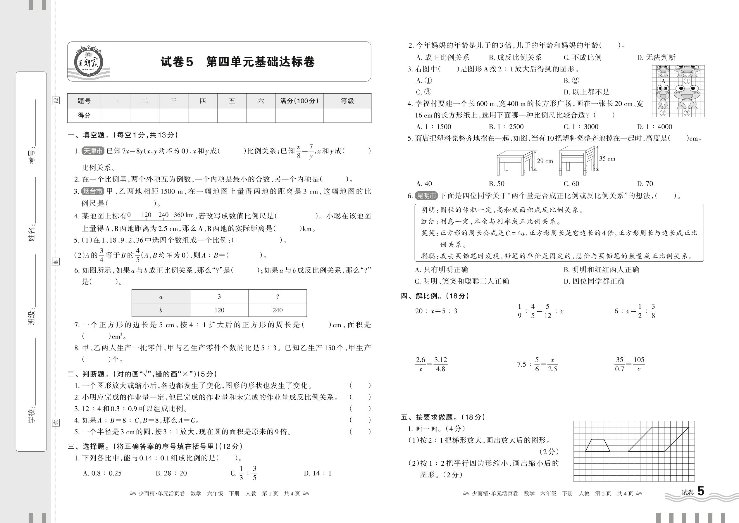 2024春下册六年级数学人教版 第四单元基础达标卷【5】