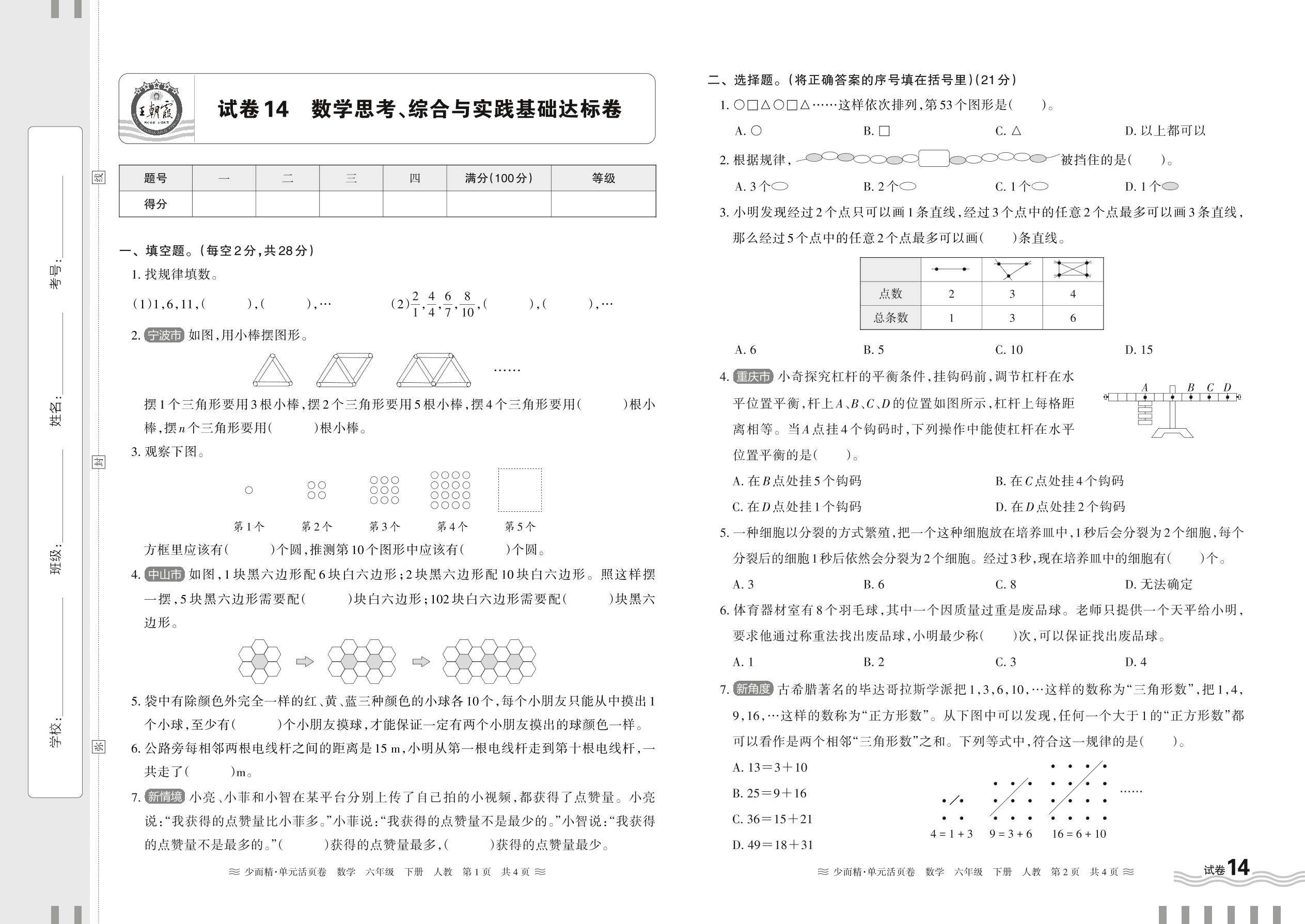 2024春下册六年级数学人教版 数学思考、综合与实践基础达标卷【14】